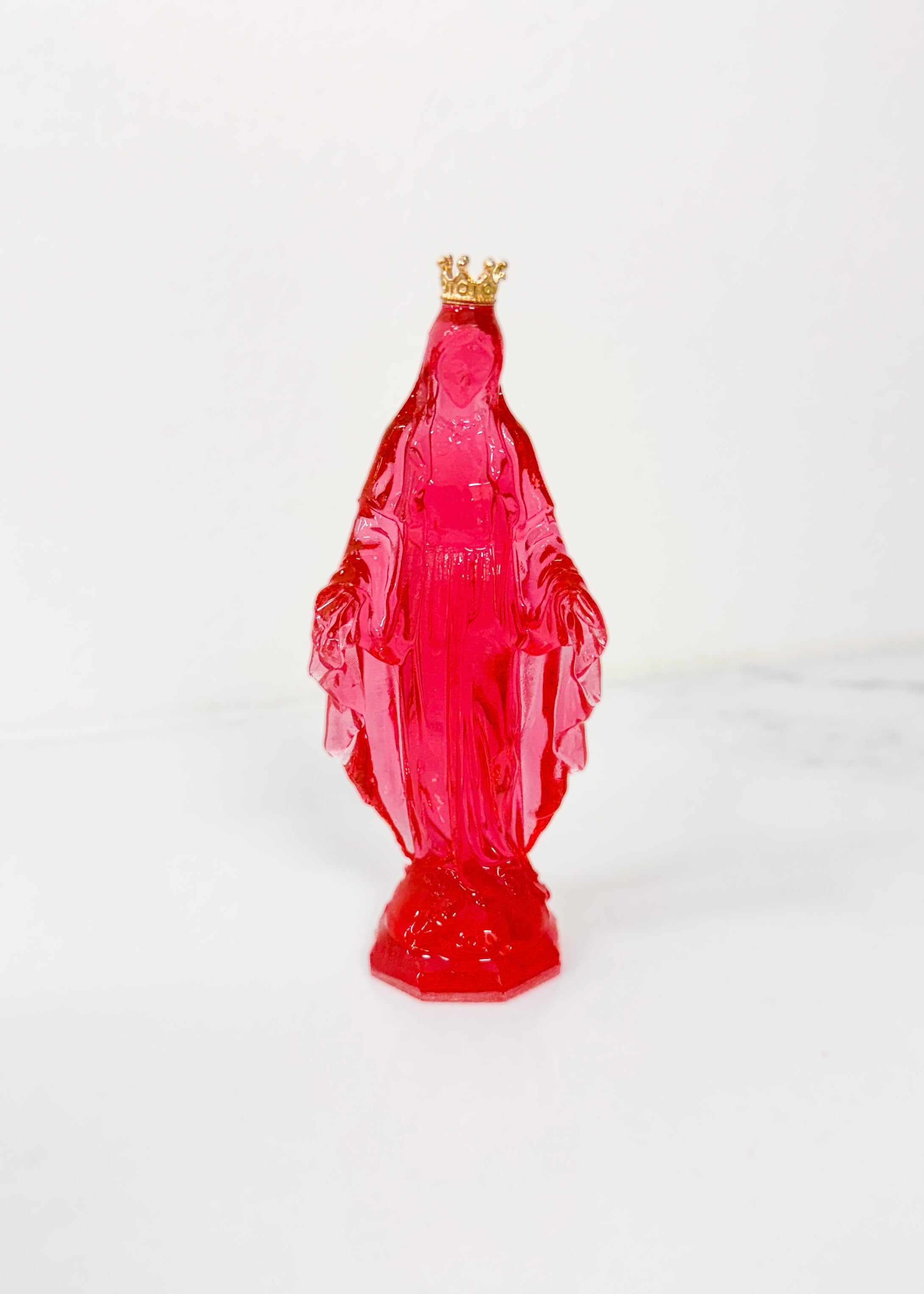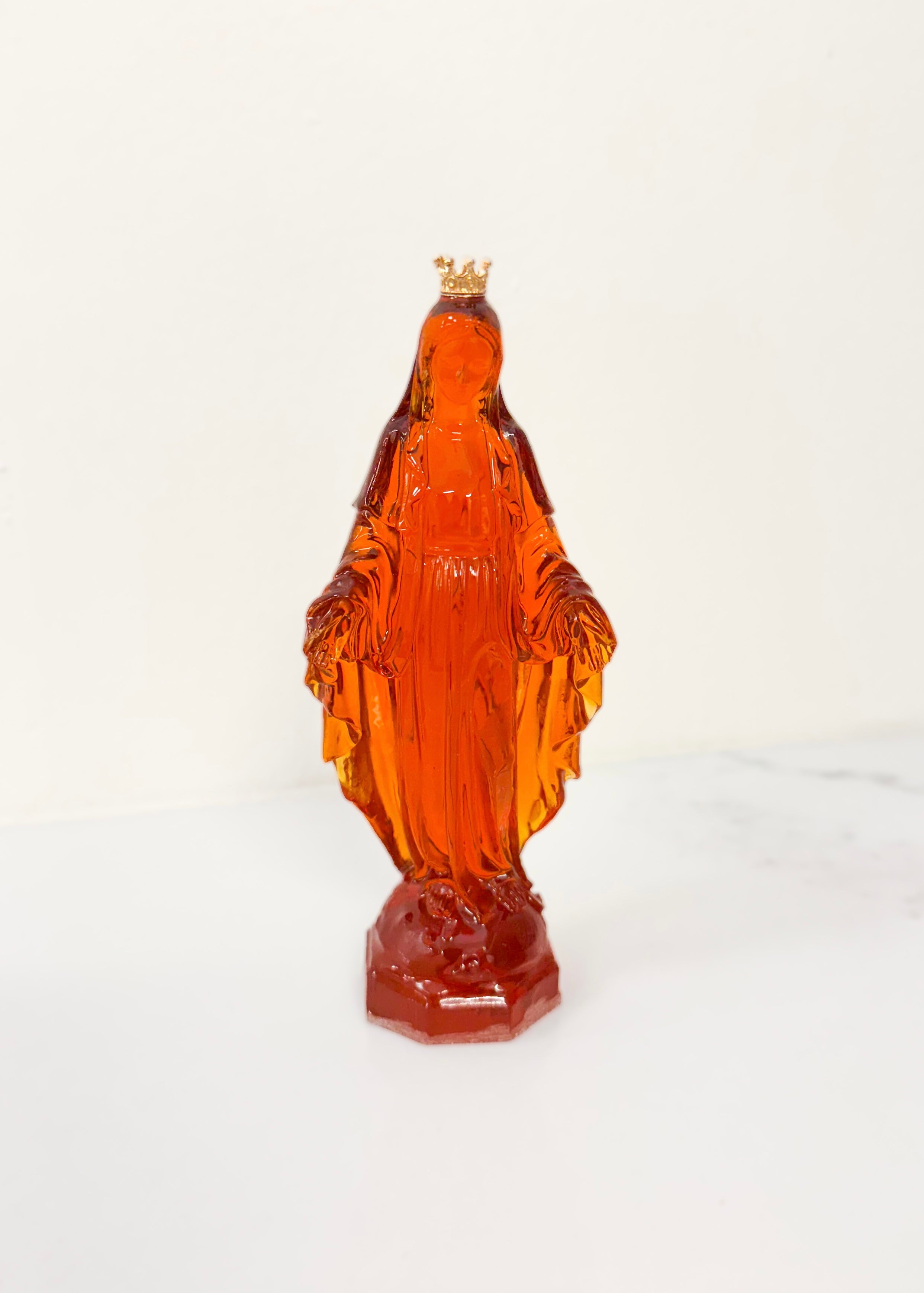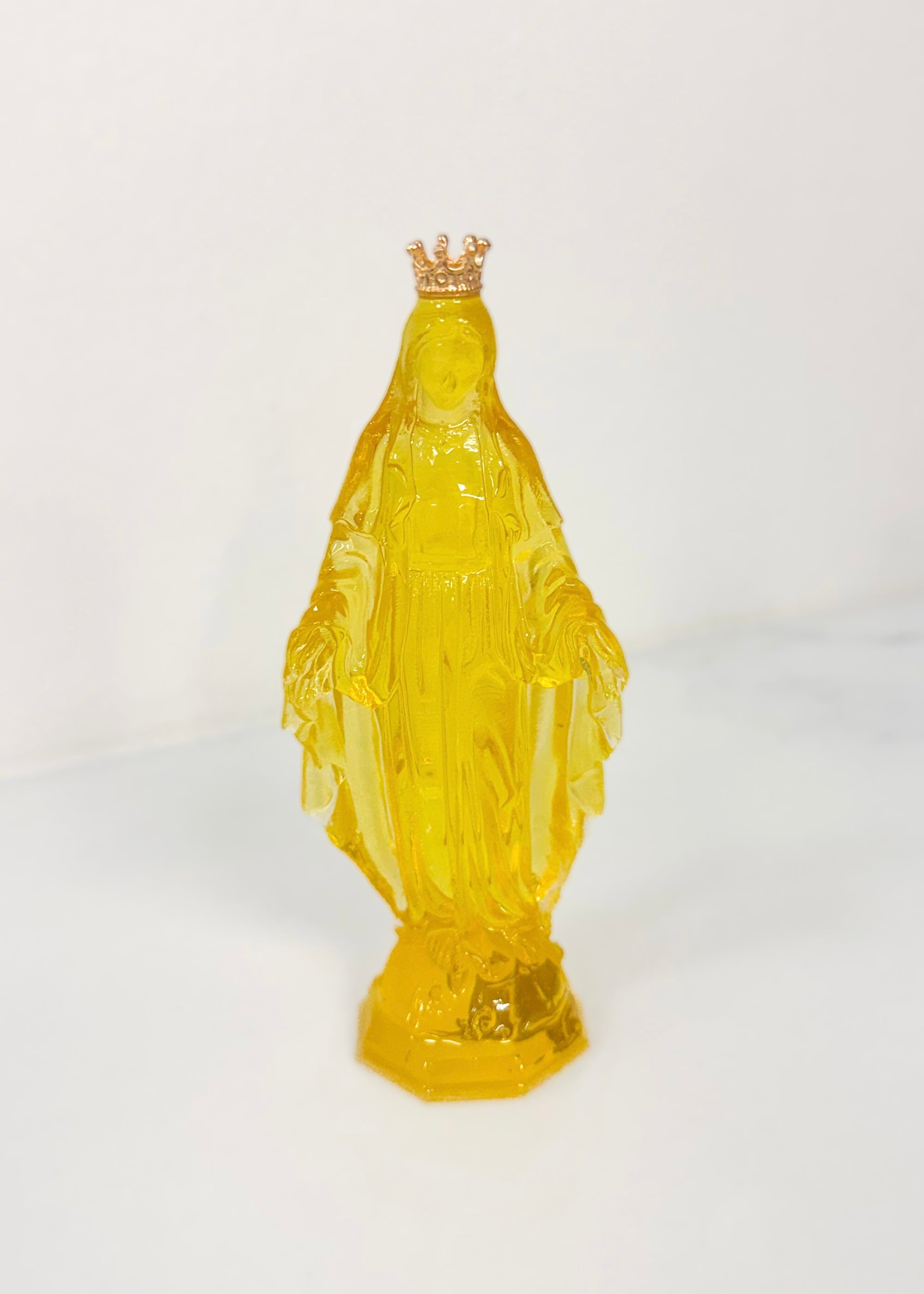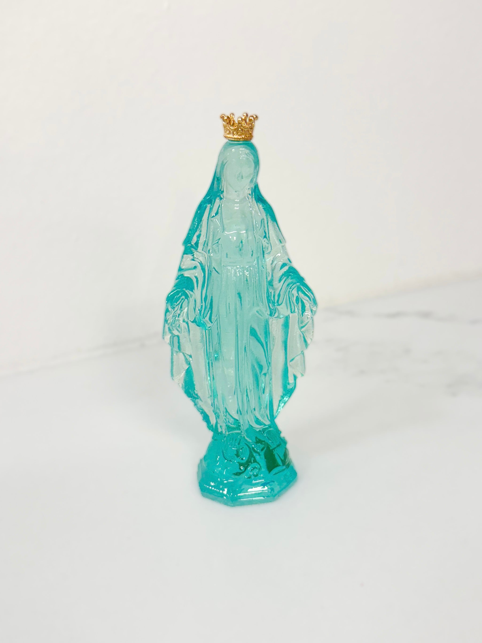 Our colorful, transparent Blessed Mother statues are handcrafted with care in our art studio, making each piece a unique work of art. Made from high-quality resin, these radiant statues capture the spirit of the Blessed Mother in a modern and artistic way.
