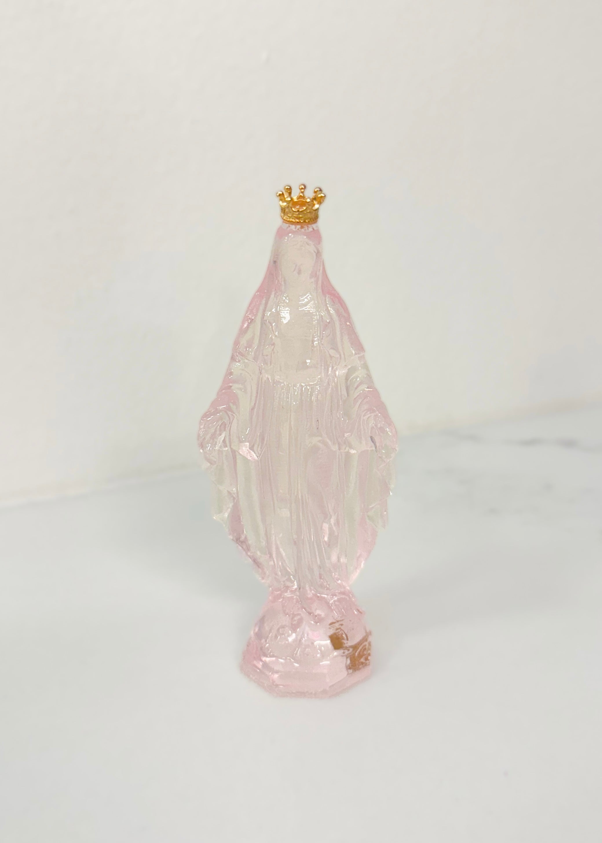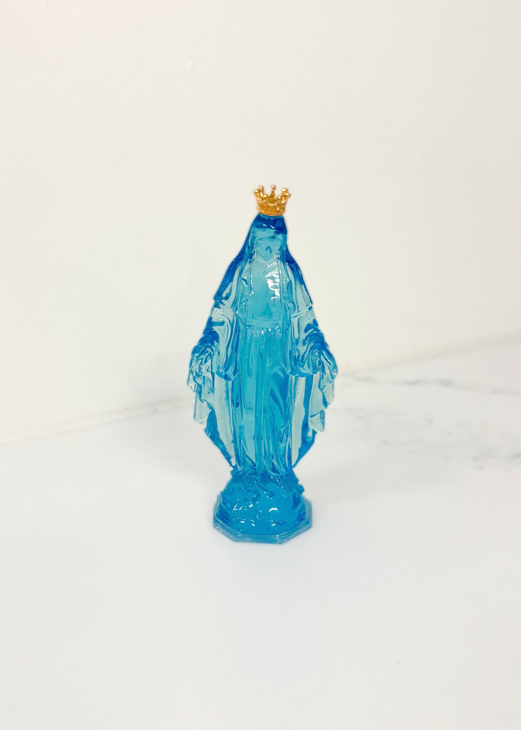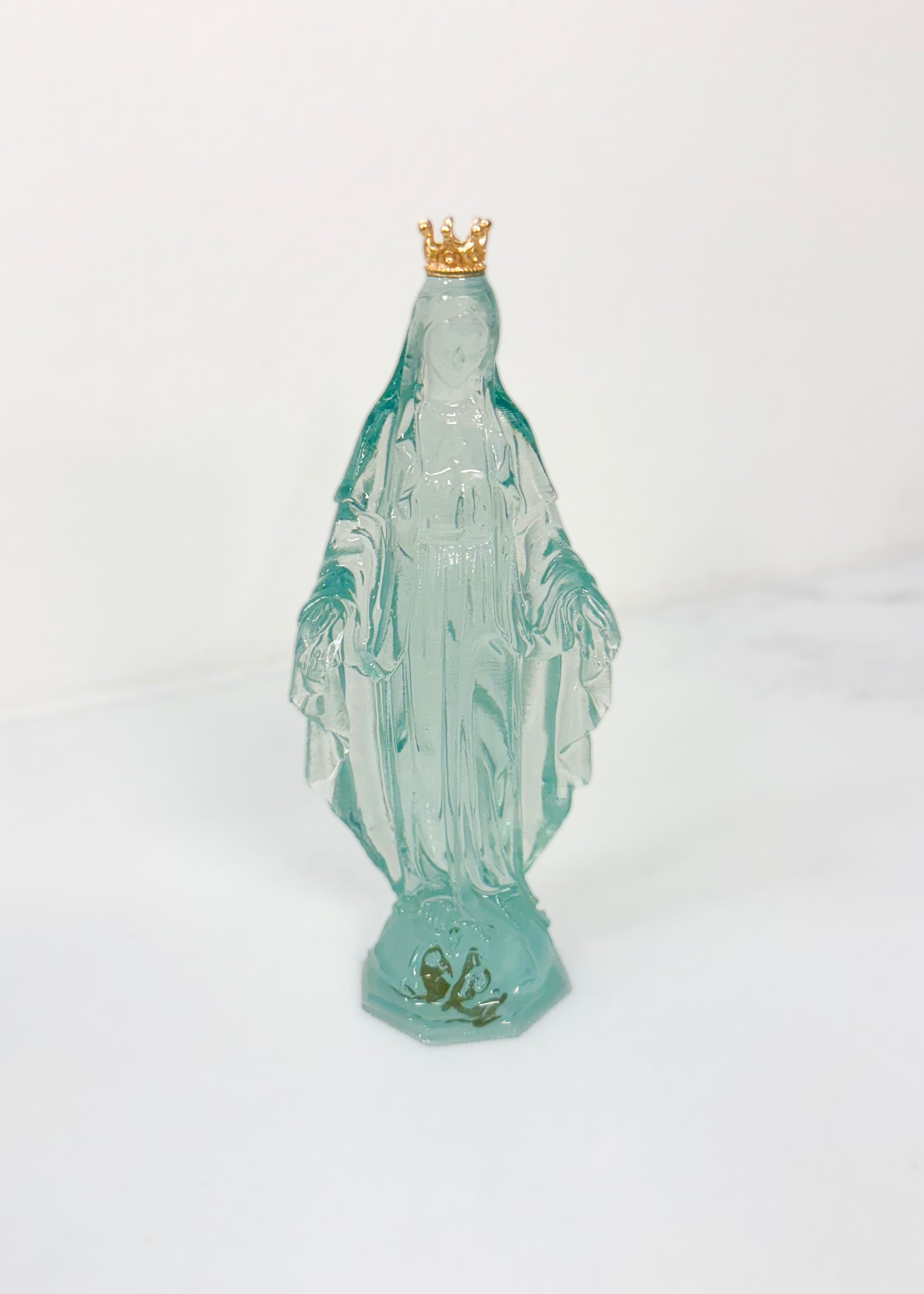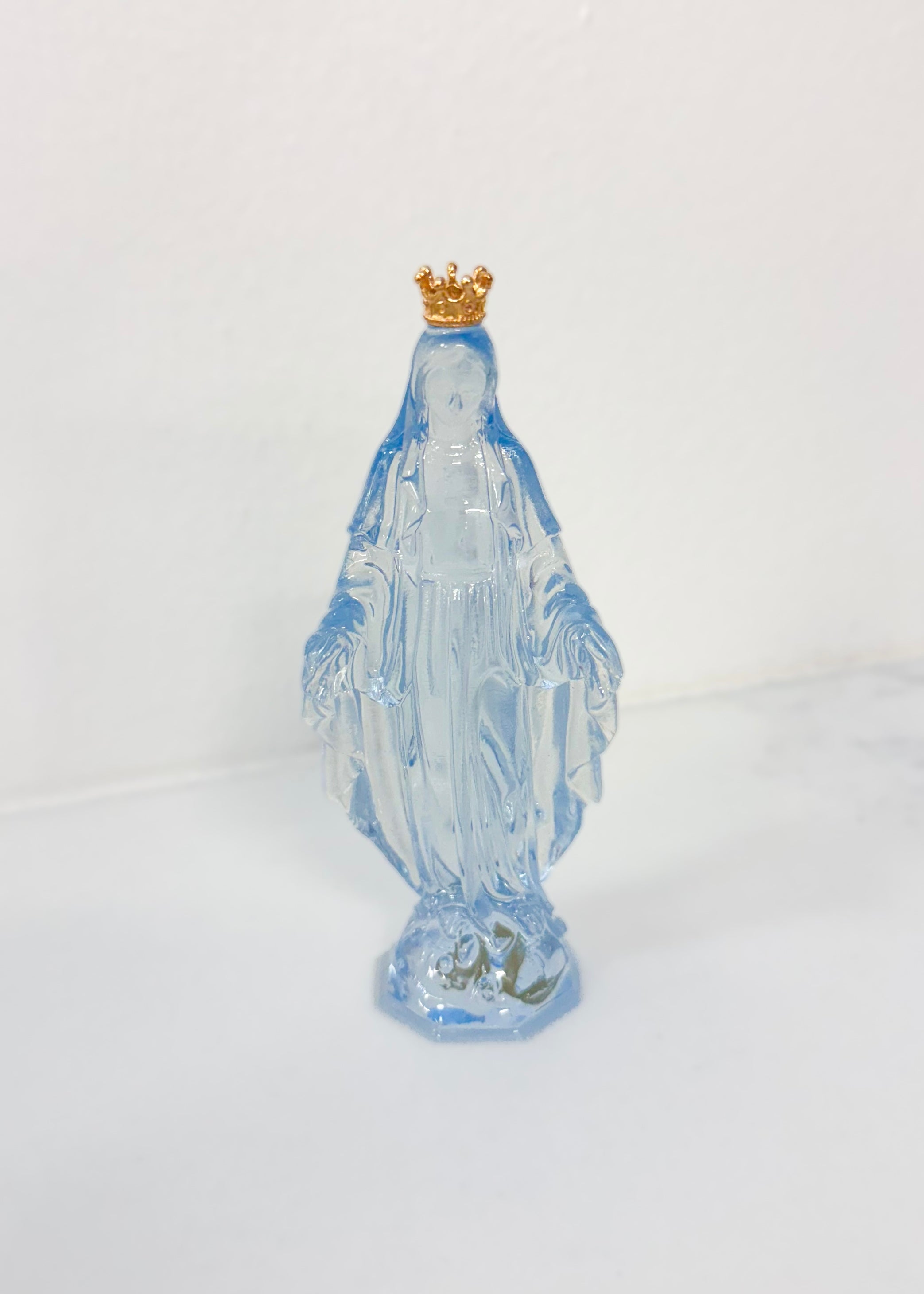 Our colorful, transparent Blessed Mother statues are handcrafted with care in our art studio, making each piece a unique work of art. Made from high-quality resin, these radiant statues capture the spirit of the Blessed Mother in a modern and artistic way.