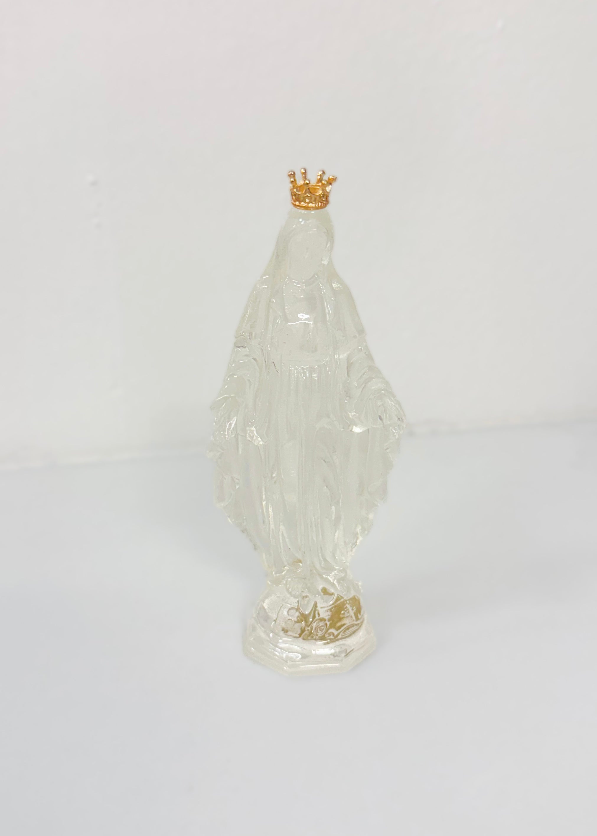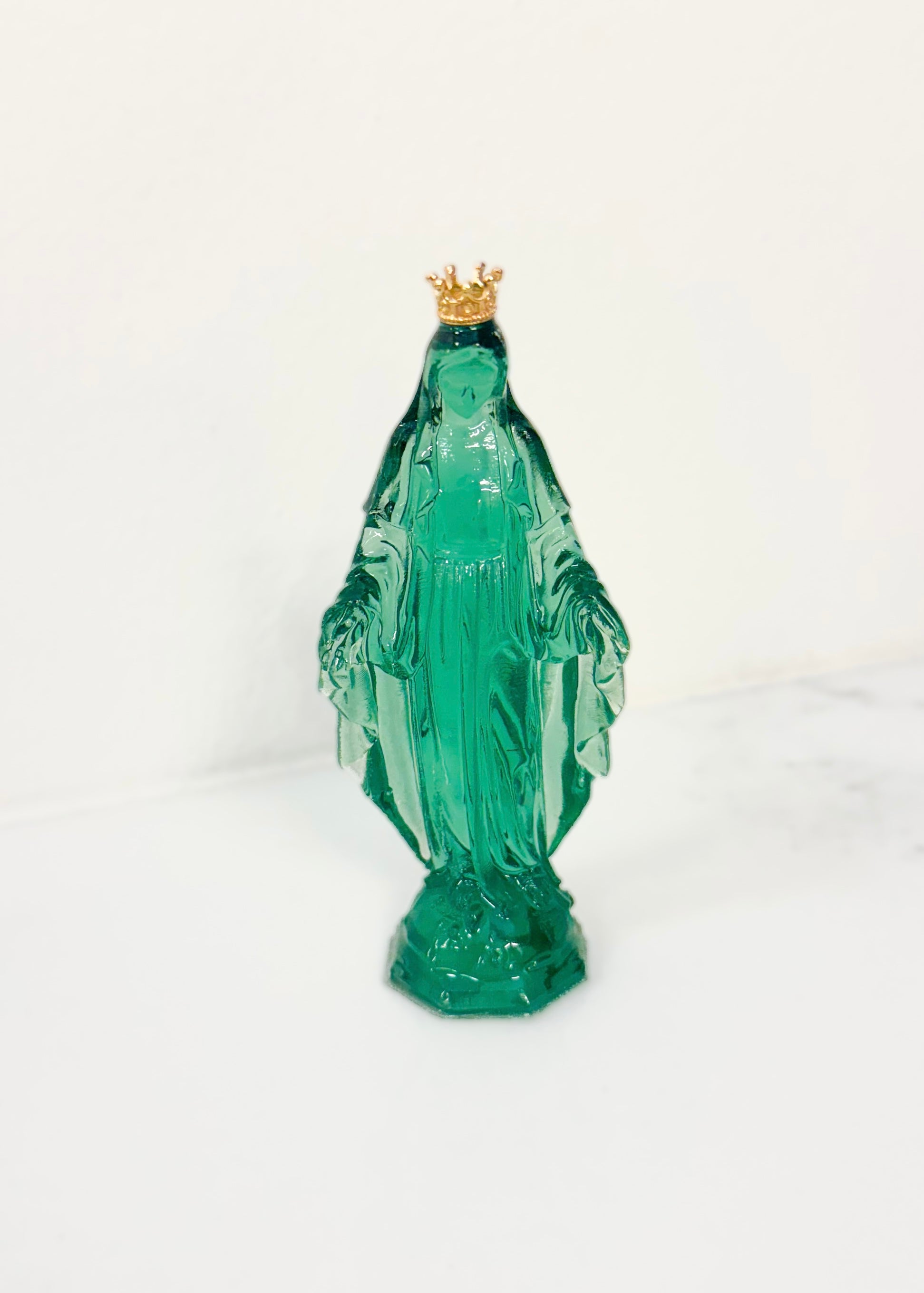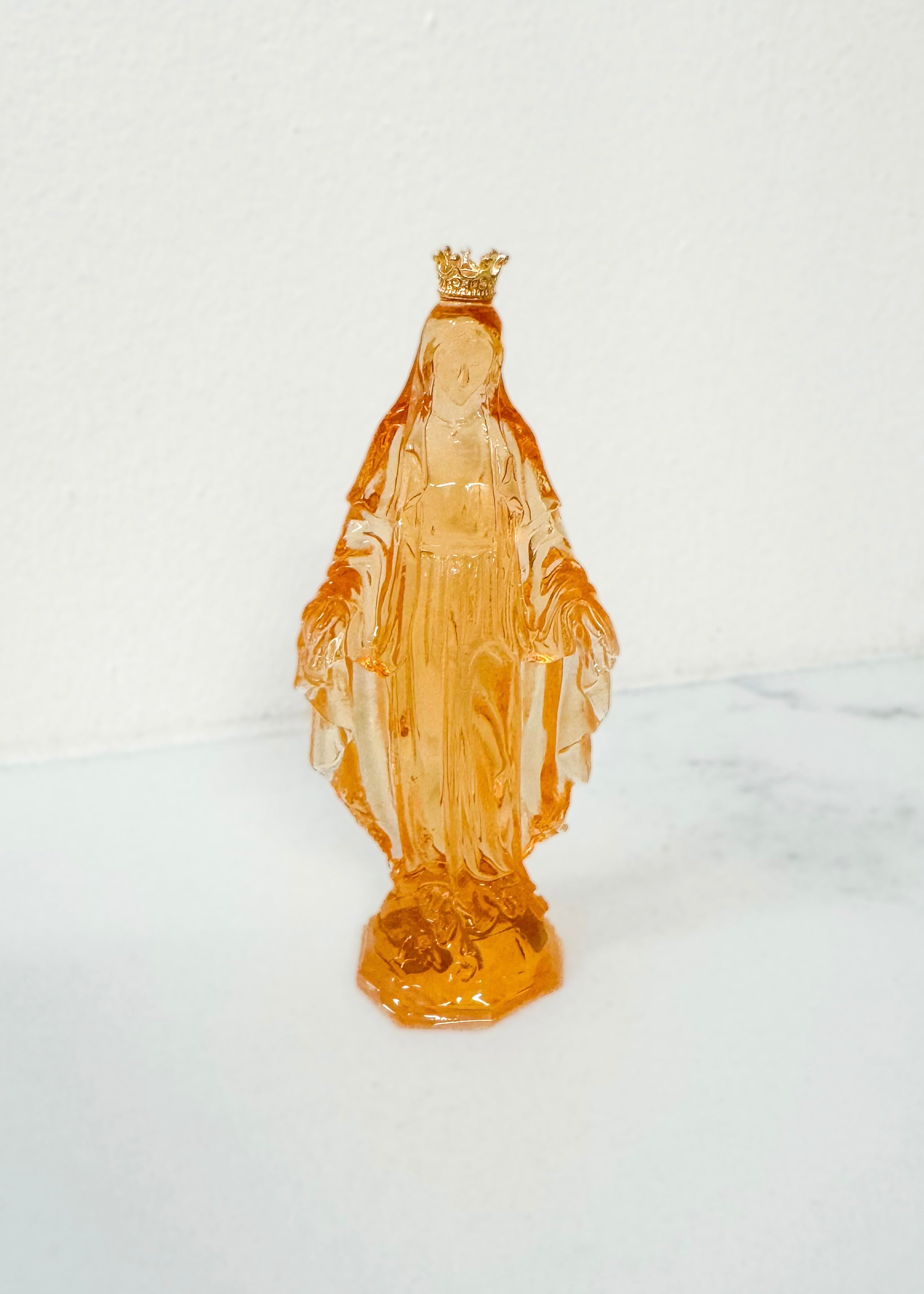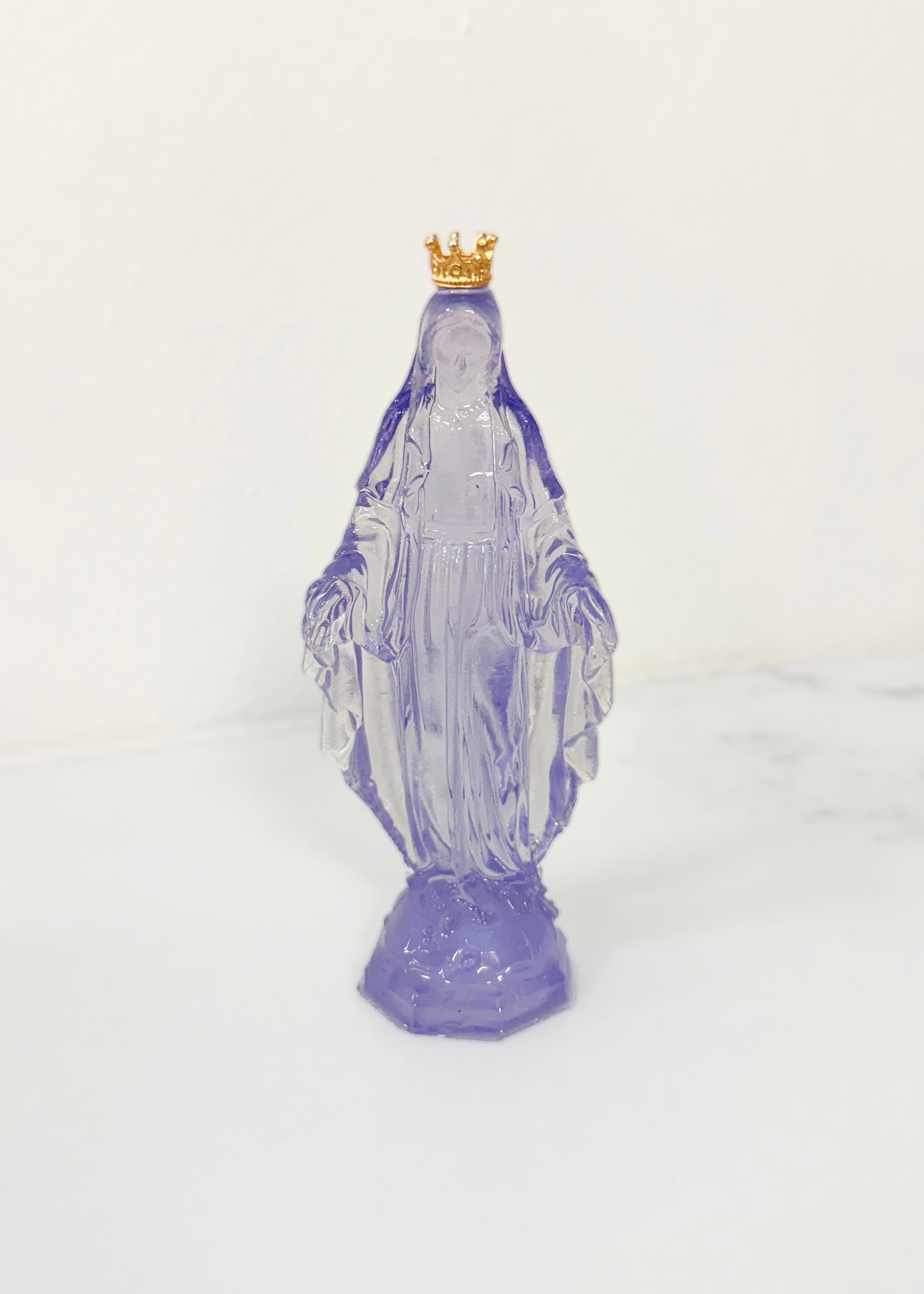 Our colorful, transparent Blessed Mother statues are handcrafted with care in our art studio, making each piece a unique work of art. Made from high-quality resin, these radiant statues capture the spirit of the Blessed Mother in a modern and artistic way.