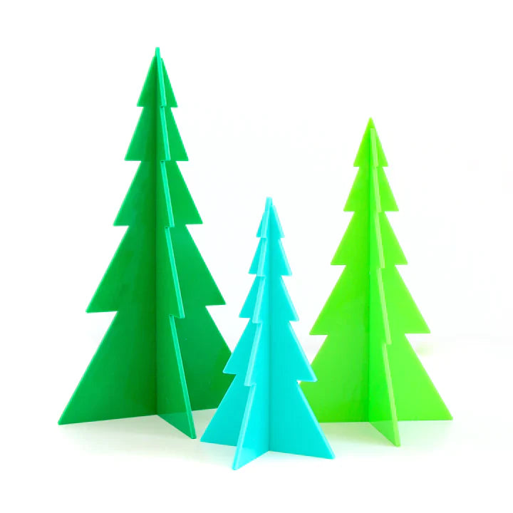 Get festive with our 3D Acrylic Trees. Flat packed and easy to assemble! Trees measure 10", 8", and 6" tall.