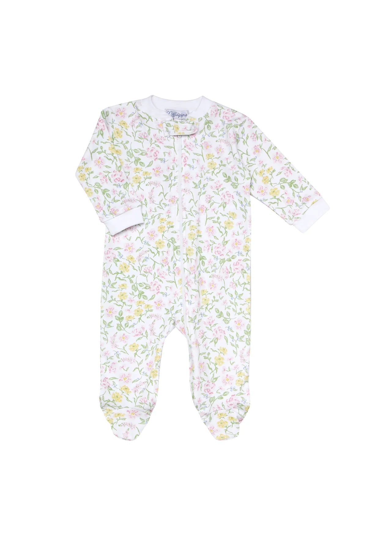 Cozy and charming! designed with a beautiful pattern and the softest cotton material. This premium footie is imprinted with tiny berry flowers and made with 100% Pima cotton, which is known for its smooth and supple quality. This kind of fabric ensures comfort, softness, and a luxurious feel. This zipper from top to bottom allows you to easily change the diaper without removing the outfit. Front zipper from top to bottom with berry imprinted design.