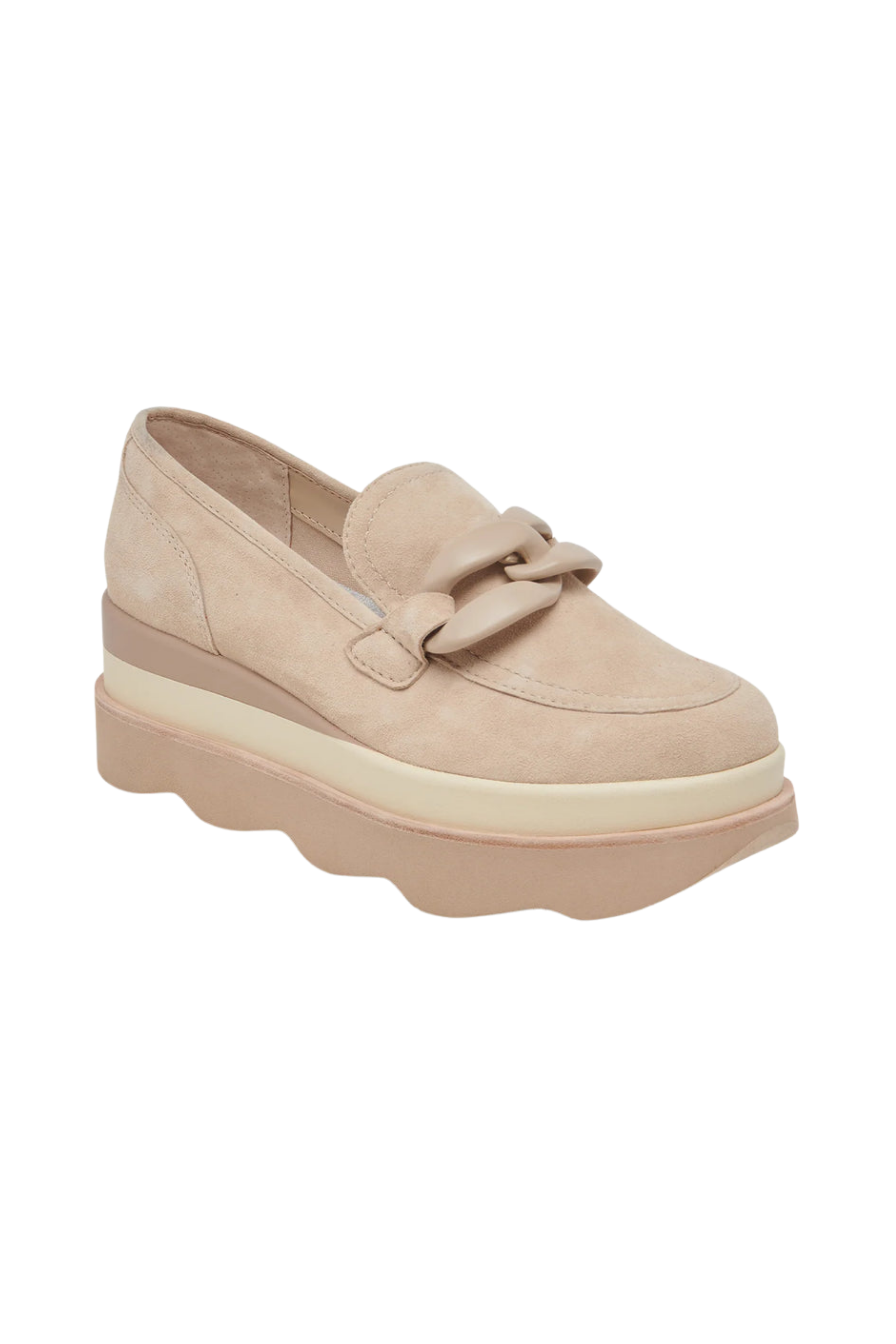 The details on this one will turn heads. JAKSEN’s scalloped platform sole is topped with mesh or suede panels and resin chain detail that styles well for work or play.