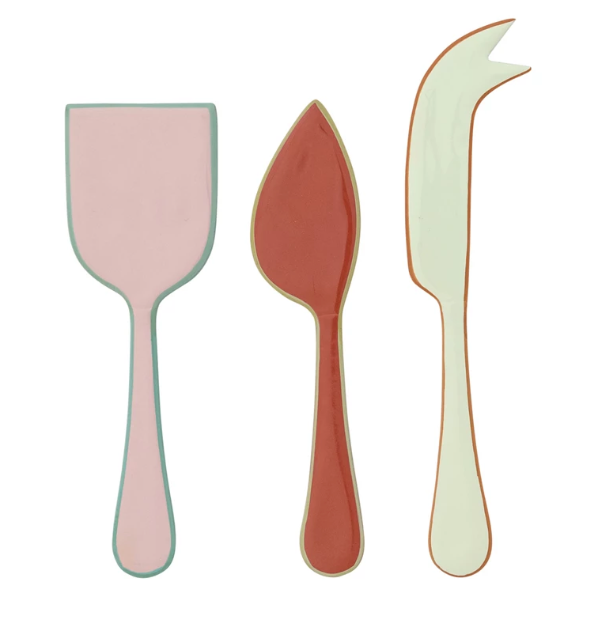6"L - 7"L Enameled Stainless Steel Cheese Knives w/ Colored Edge, Multi Color, Set of 3