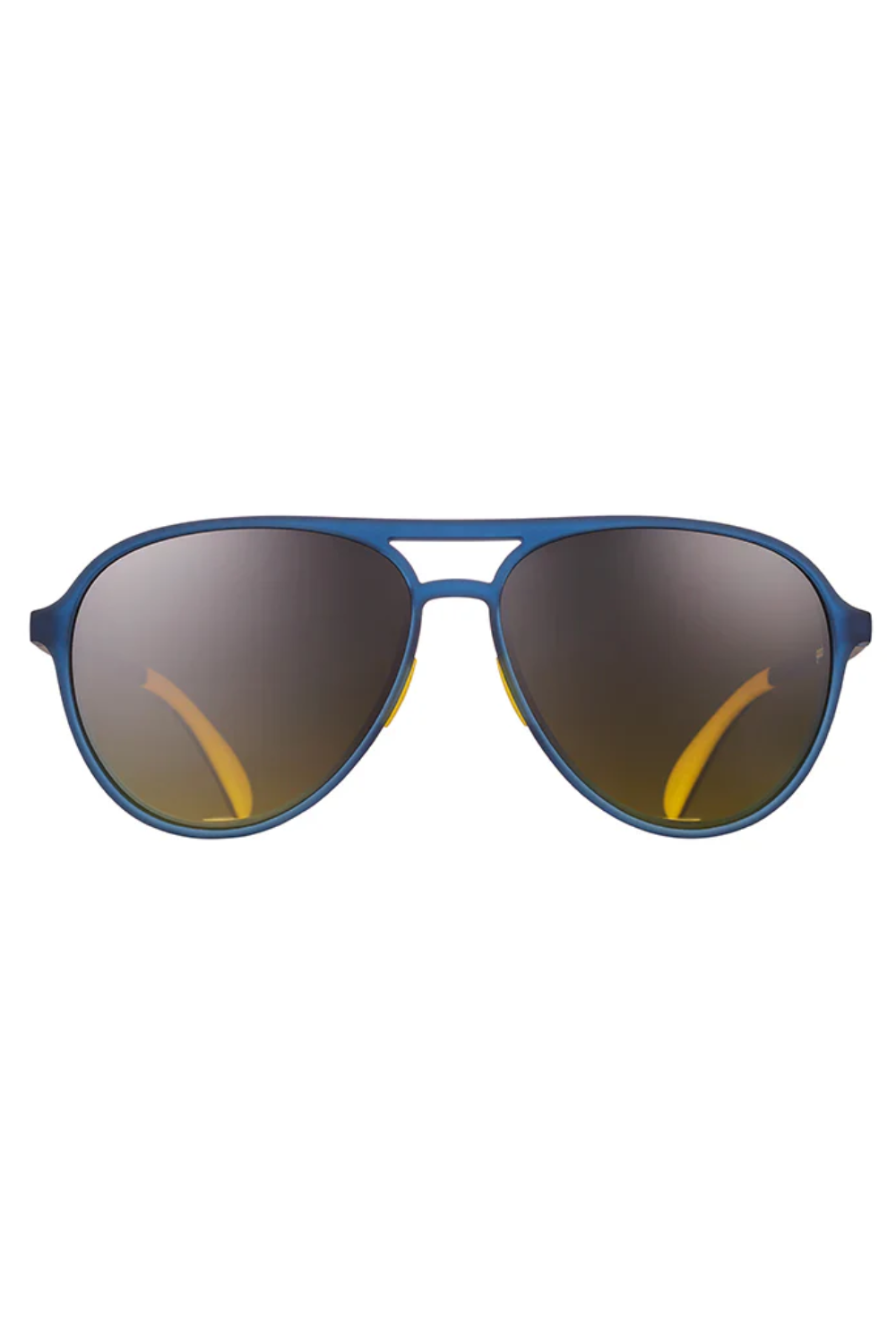 Our MACH Gs are a classic aviator style made to give you the speed if you feel the need. Plus, this smooth, sleek frame means no unsightly imprints on your nose from those weird nose pads on traditional metal aviator frames.