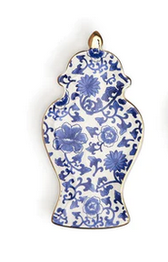 These adorable trinket trays are shaped as ginger jars featuring a trendy Chinoiserie pattern. Put it in the bathroom or kitchen, while you wash your hands, do dishes or prepare a meal or leave it by the nightstand to place your rings, earrings, necklaces and watches.