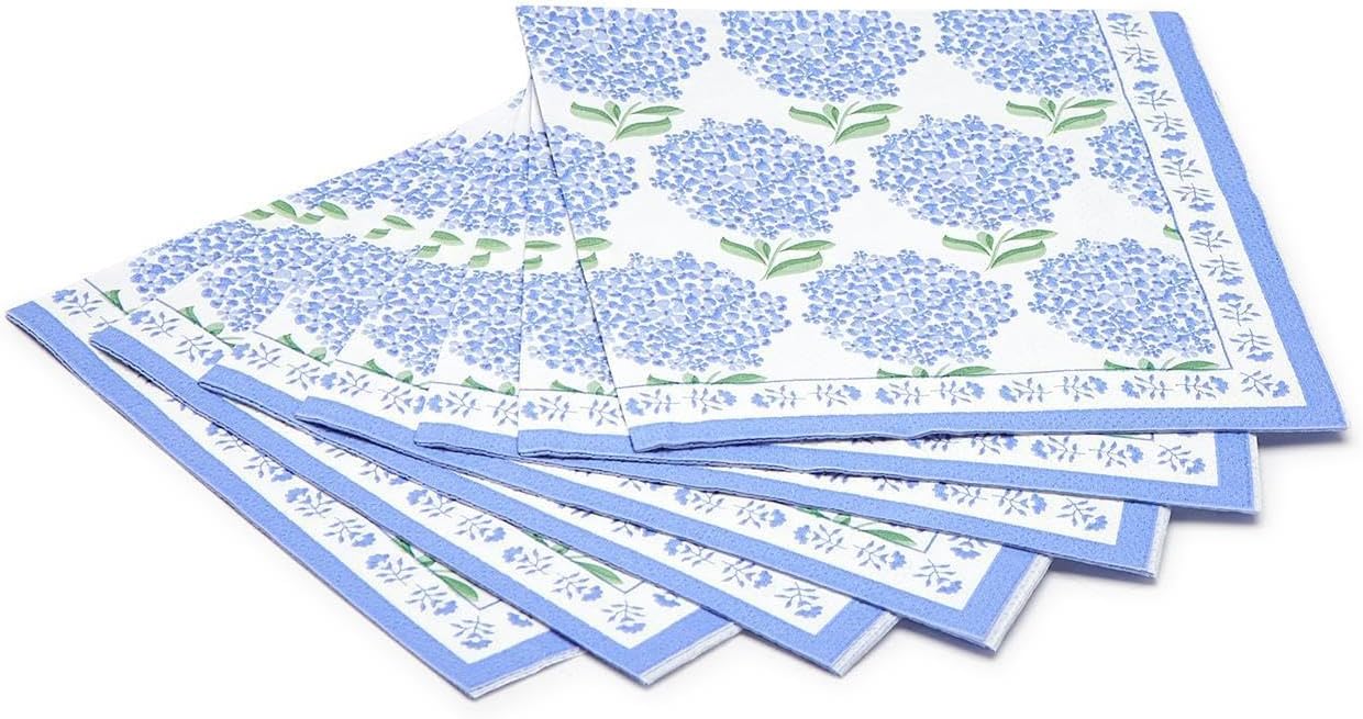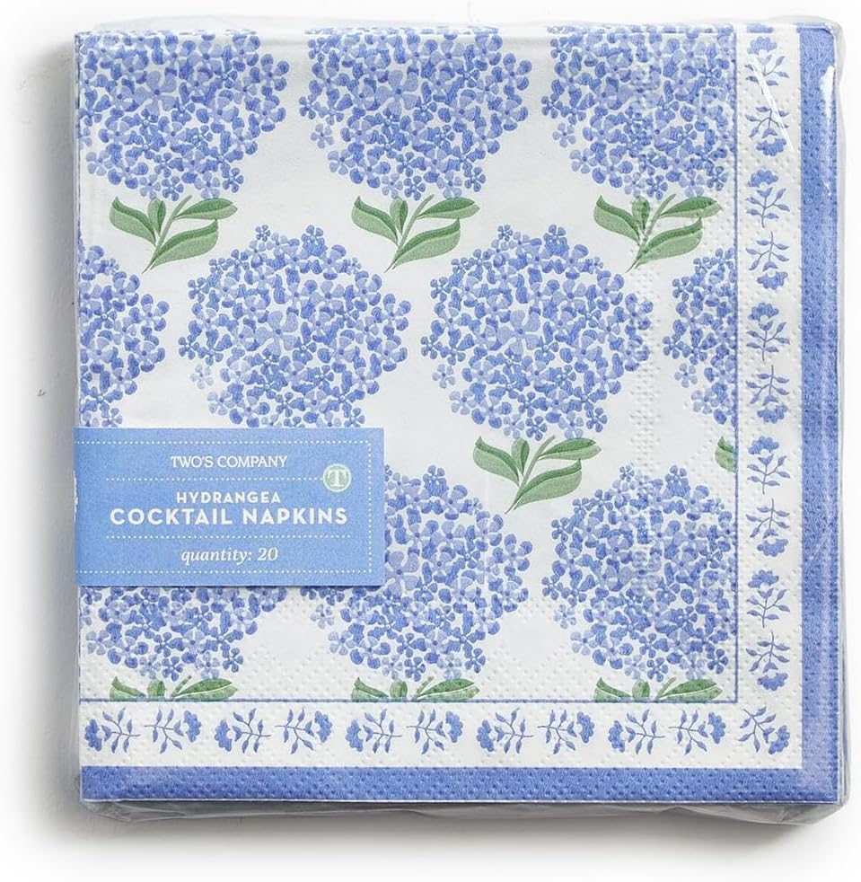 Elevate your dining experience with these exquisite cocktail paper napkins, each adorned with the delicate beauty of hydrangea blooms. Perfect for any occasion, each set includes 20 high-quality napkins that bring a touch of elegance and sophistication to your table settings.