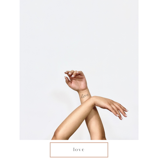 Hand-lettering in temporary tattoos! They go on in seconds and last up to five days and are waterproof.