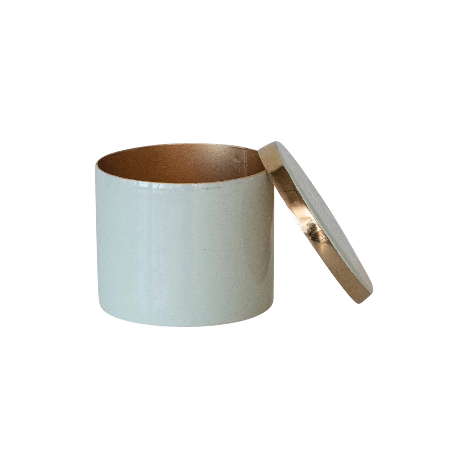 3-1/4" Round x 2-3/4"H Decorative Enameled Metal Box w/ Lid, Mint Color & Brass Finish