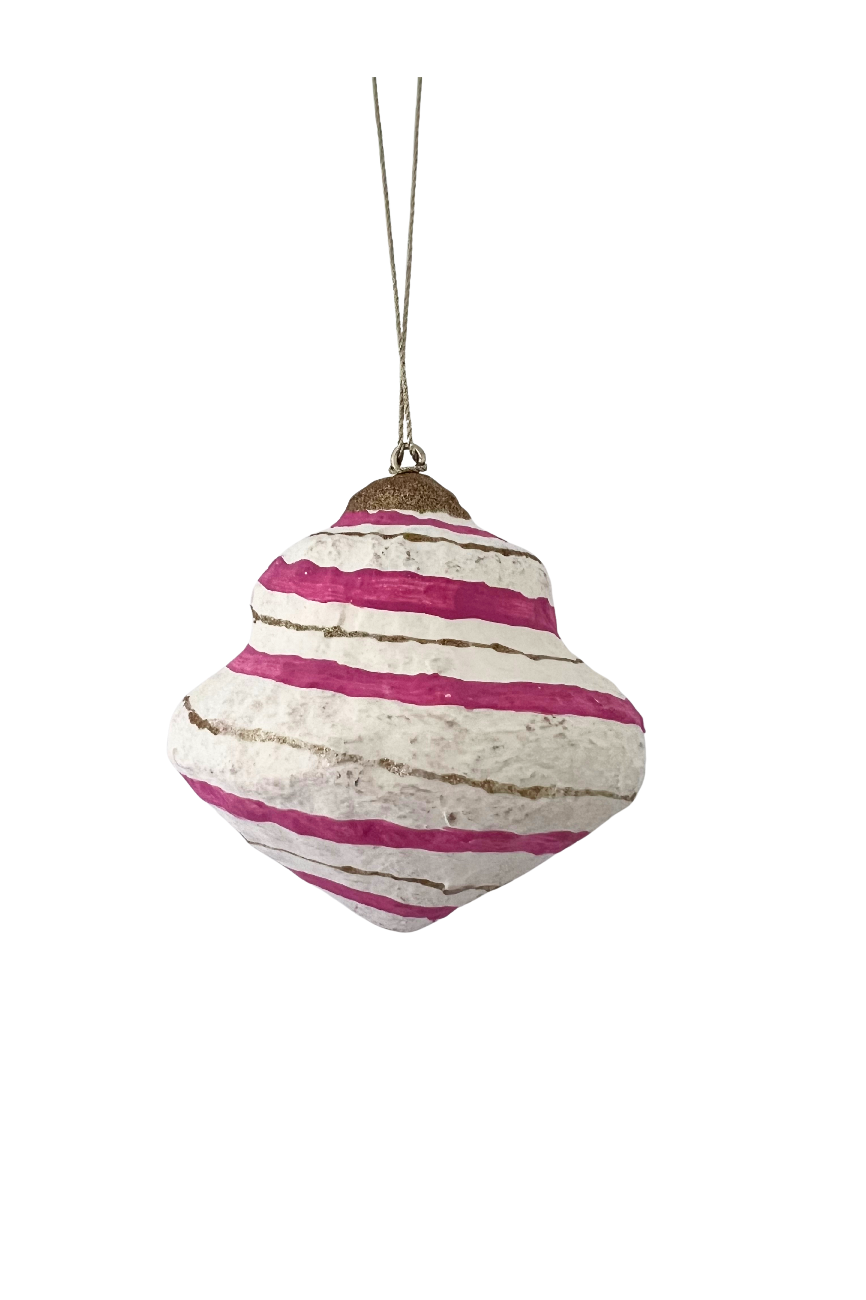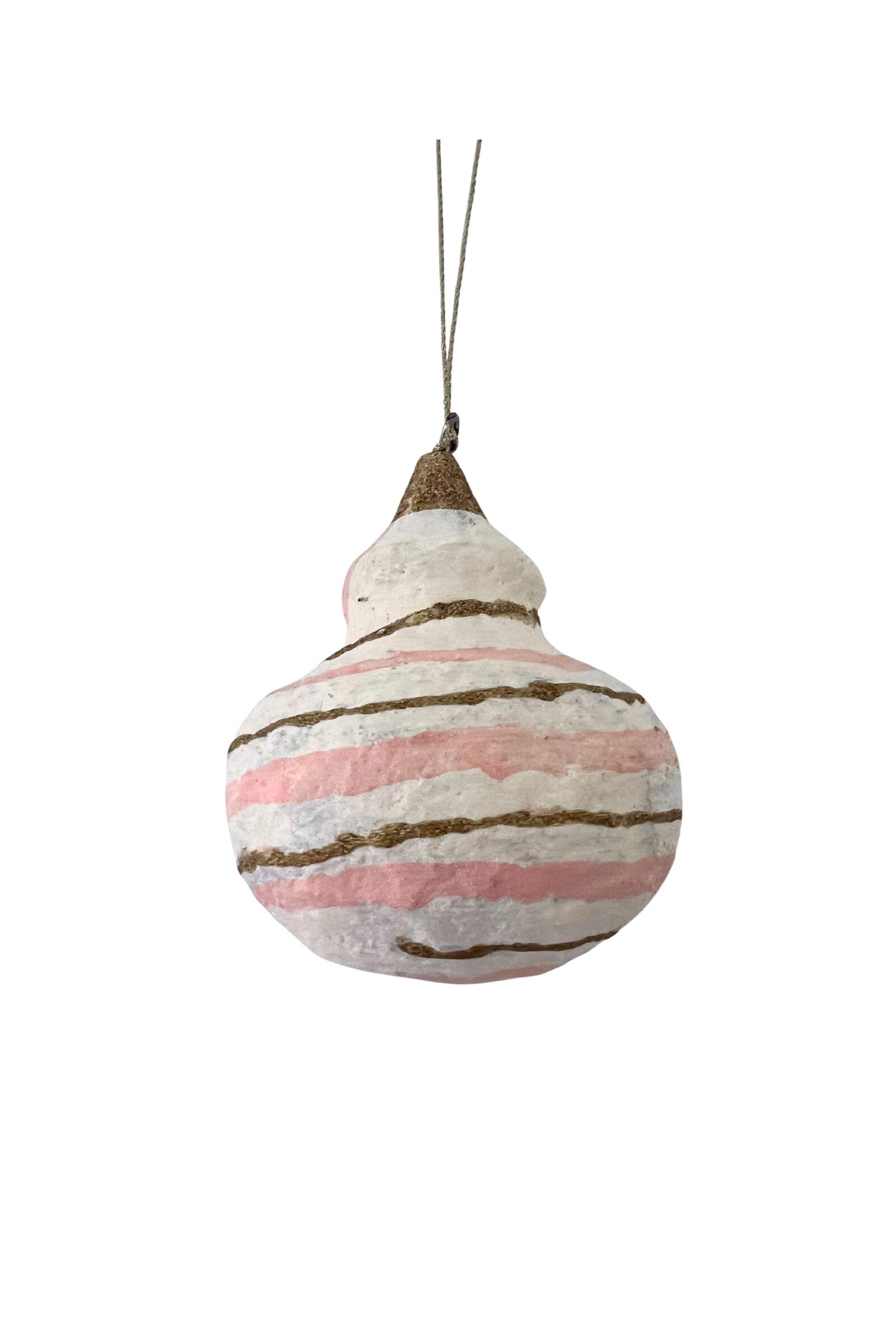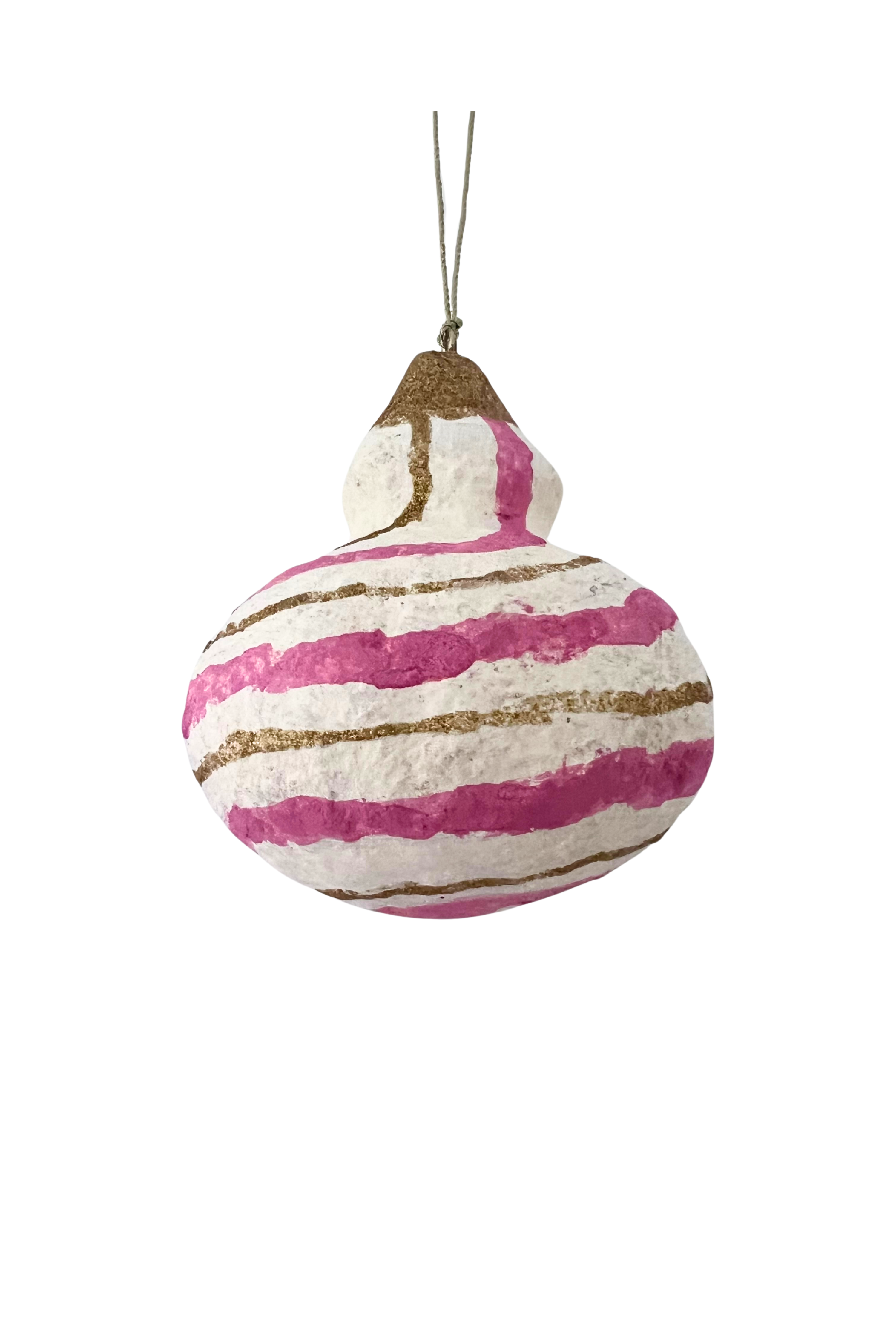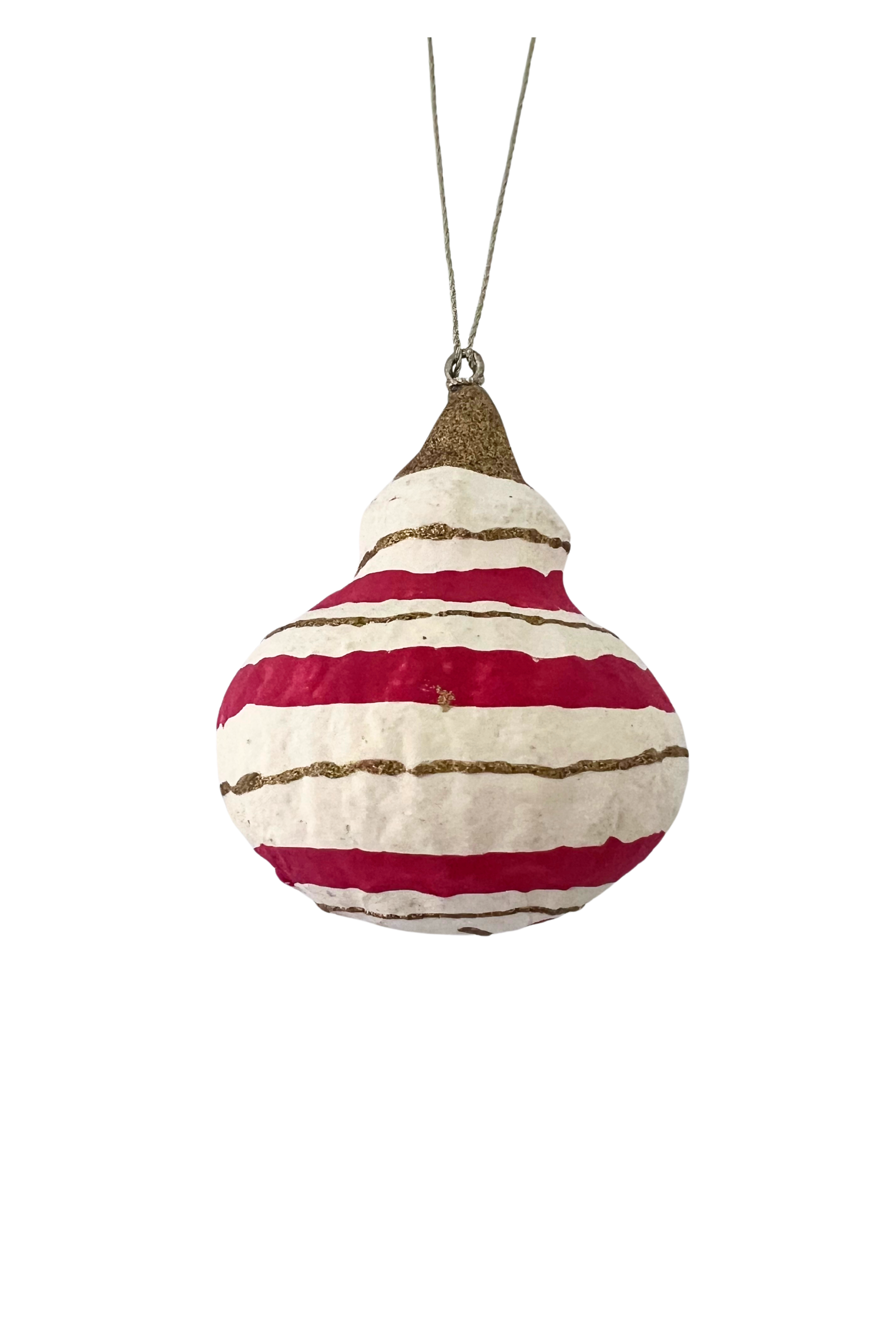 3"H - 3-1/2"H Handmade Paper Mache Ornament w/ Stripes/Dots & Gold Details, Multi Color, 18 Styles (Each One Will Vary)
