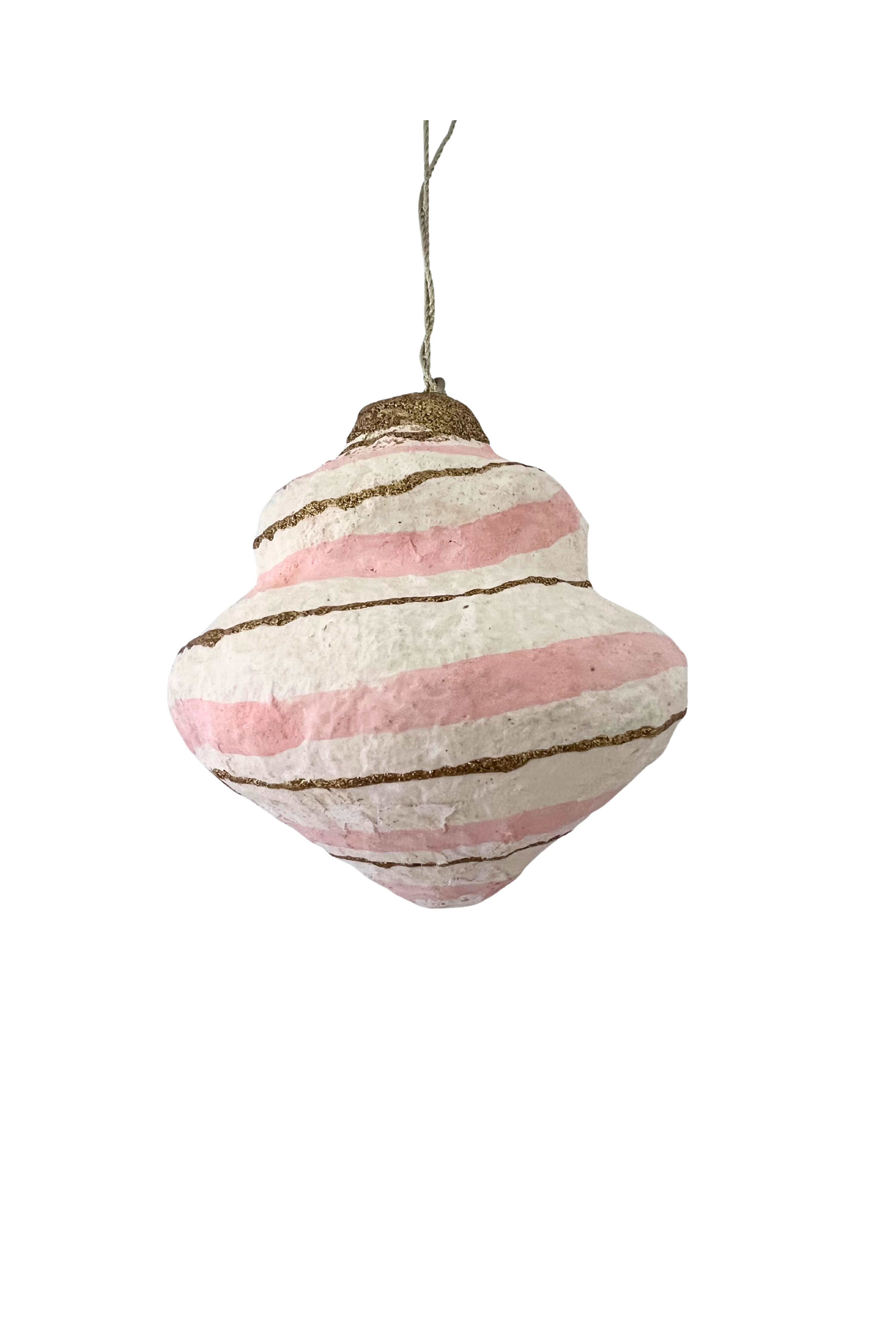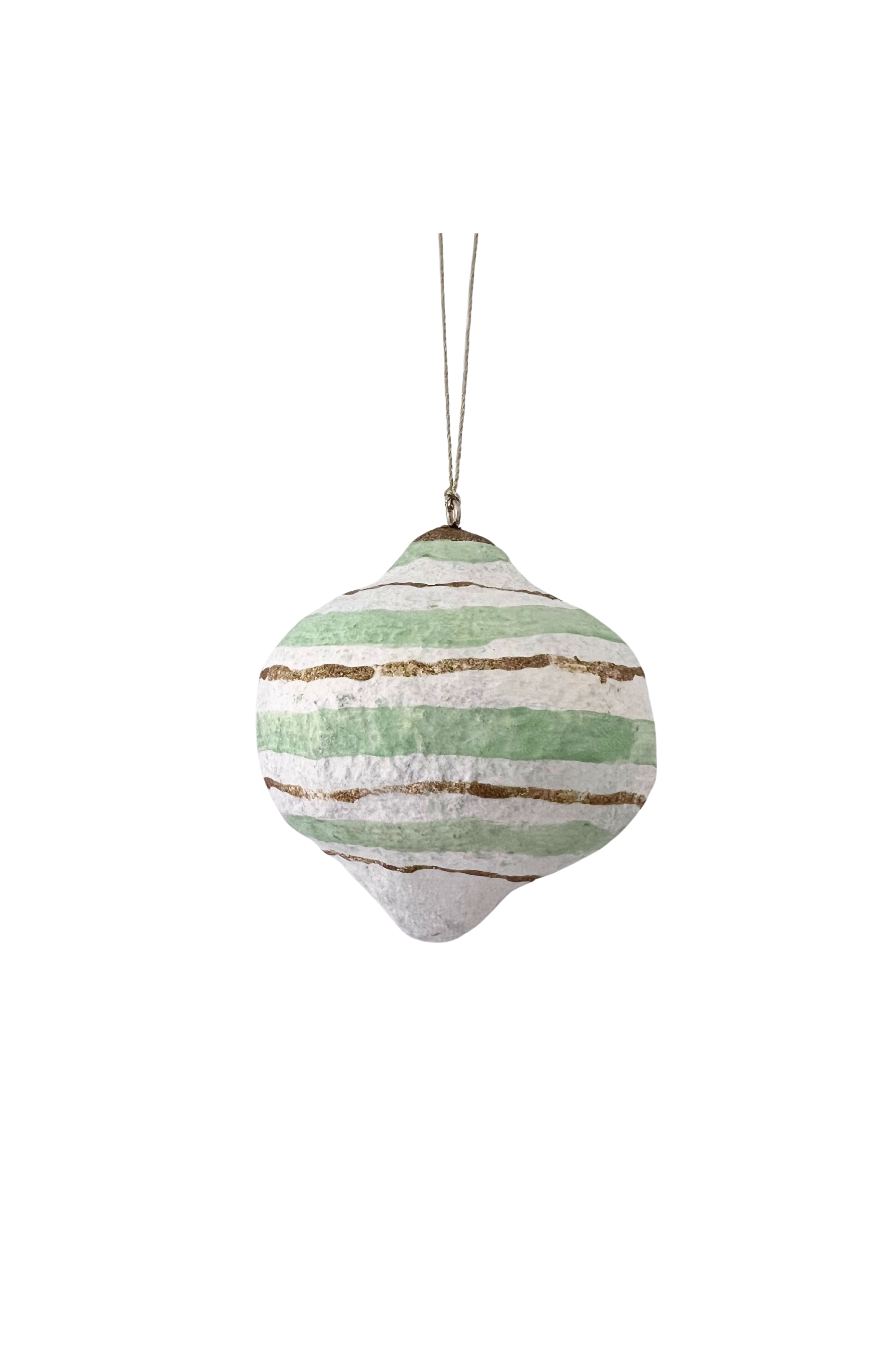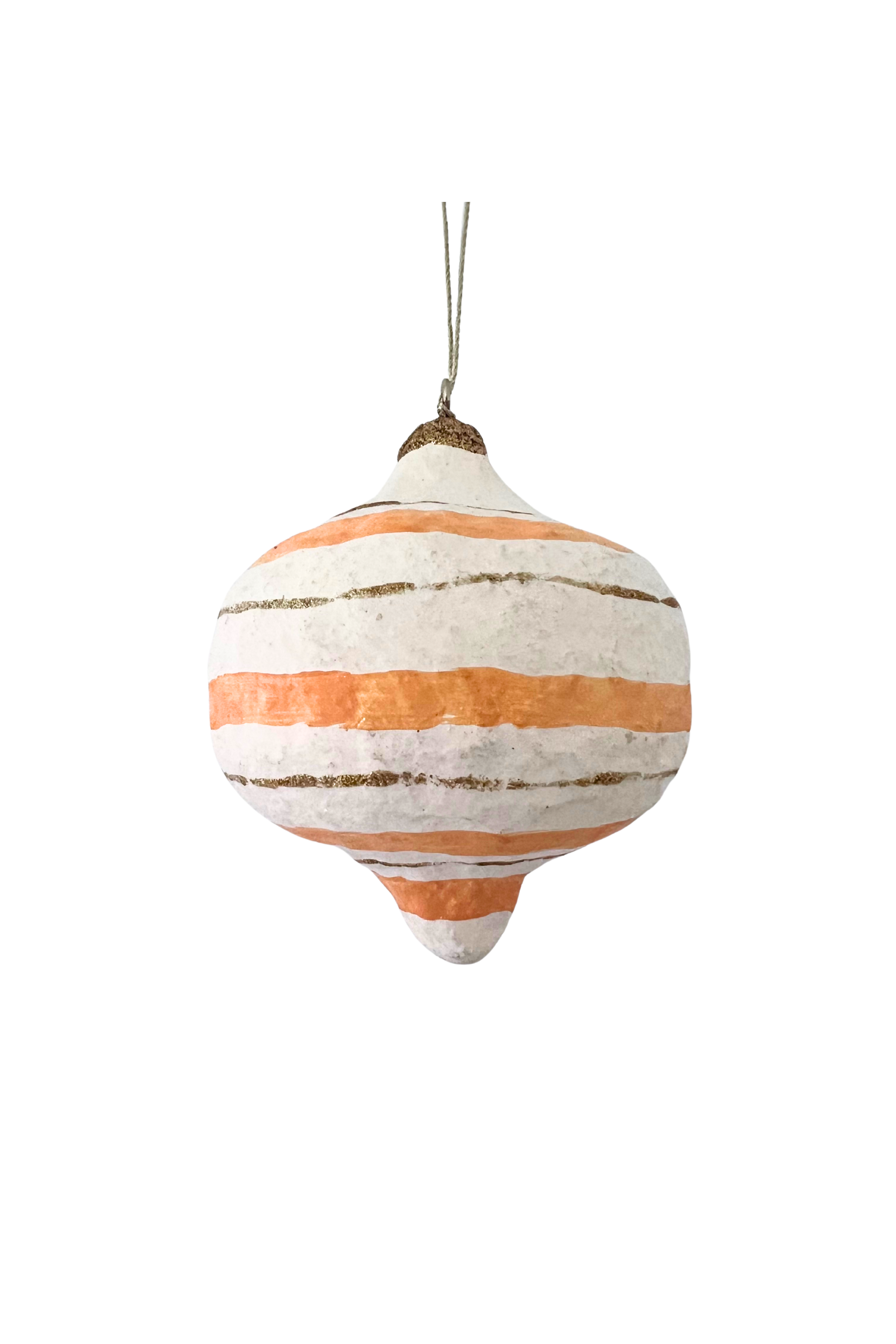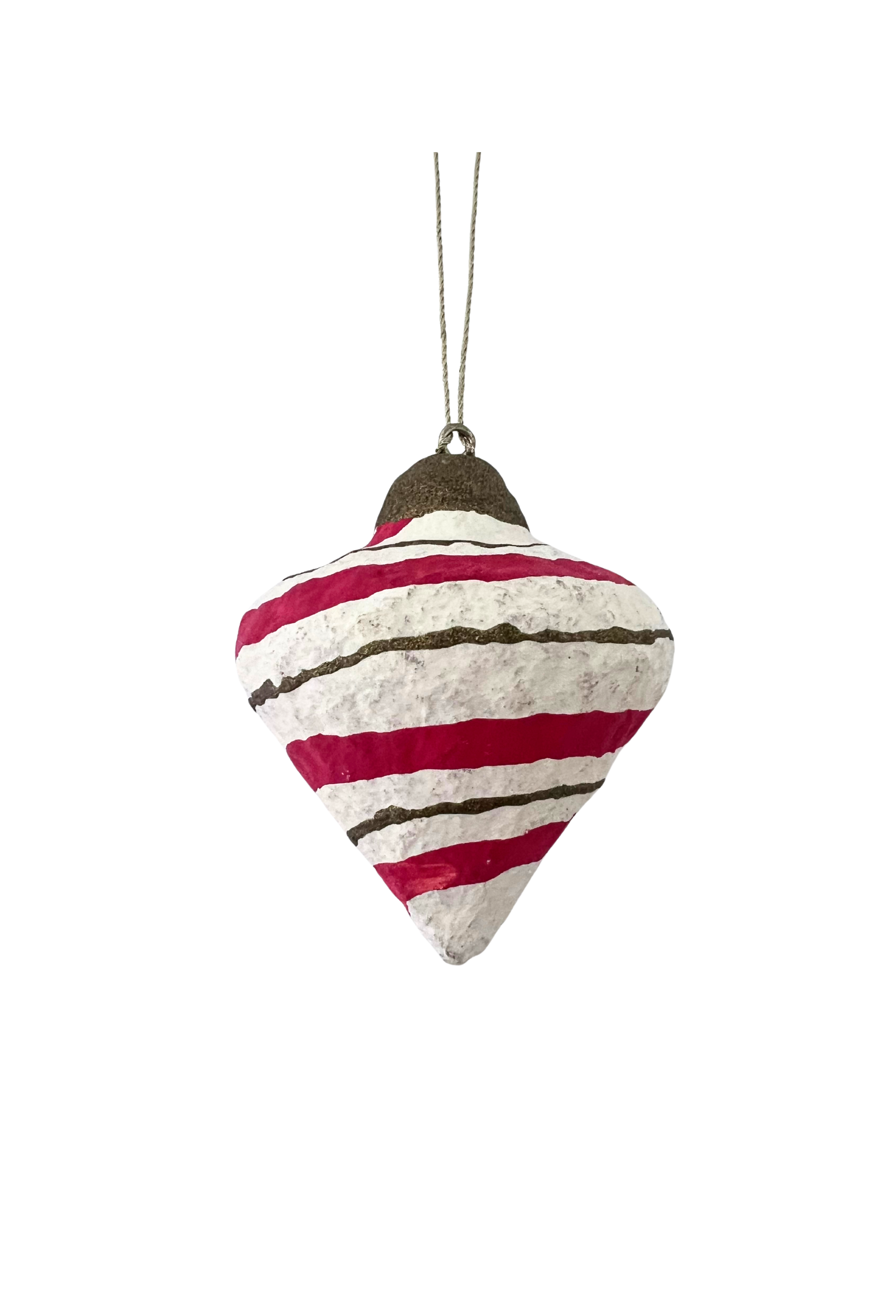 3"H - 3-1/2"H Handmade Paper Mache Ornament w/ Stripes/Dots & Gold Details, Multi Color, 18 Styles (Each One Will Vary)
