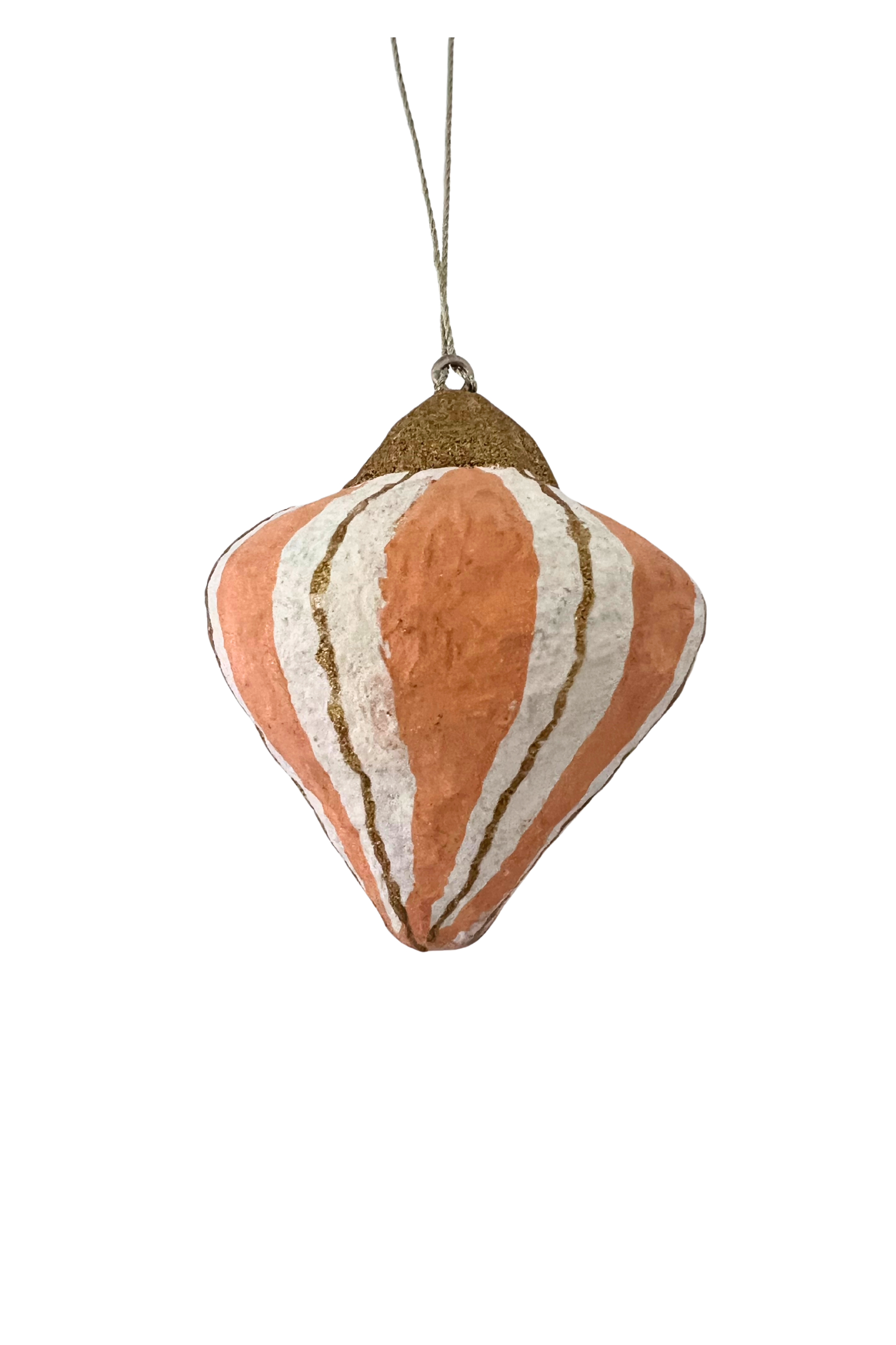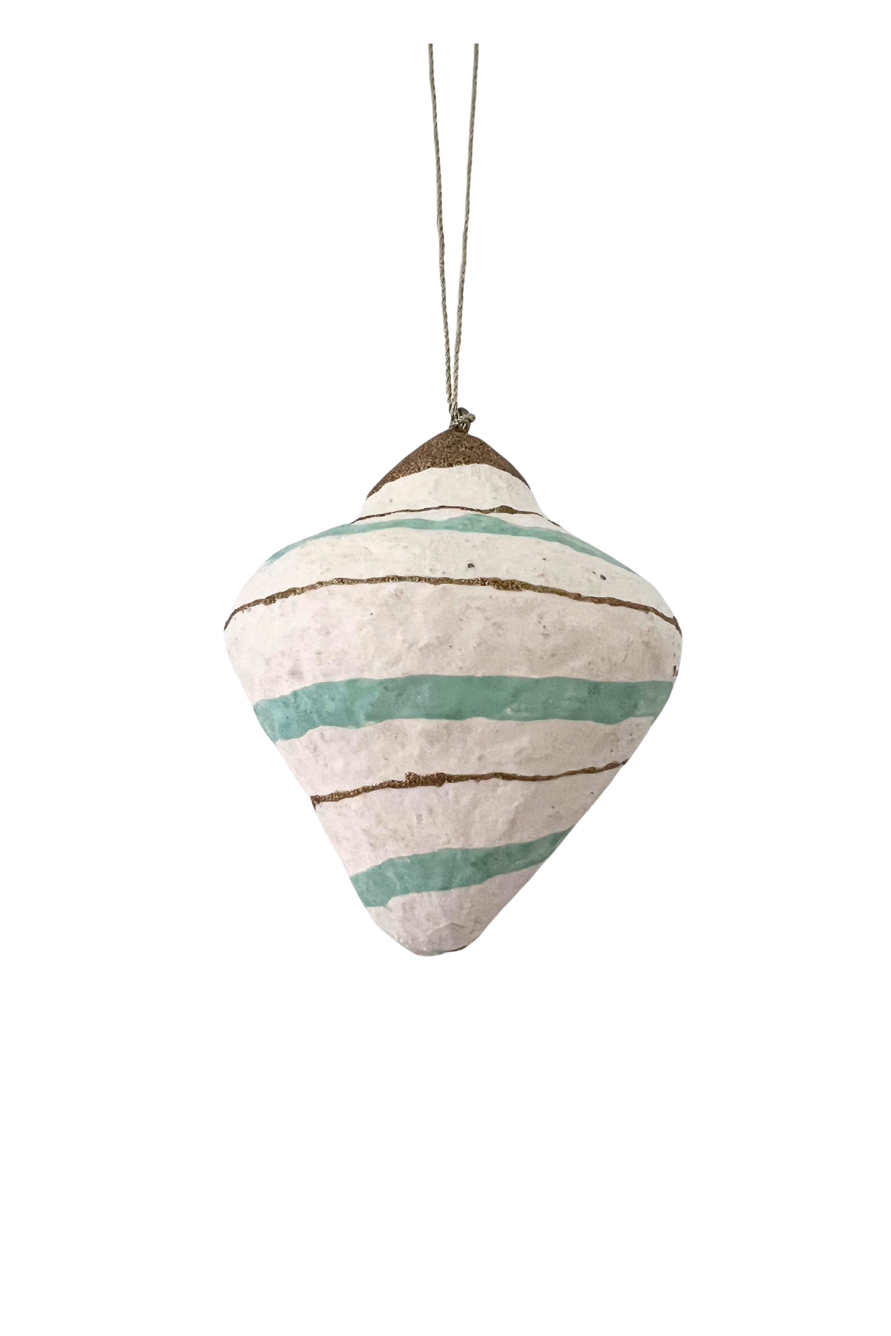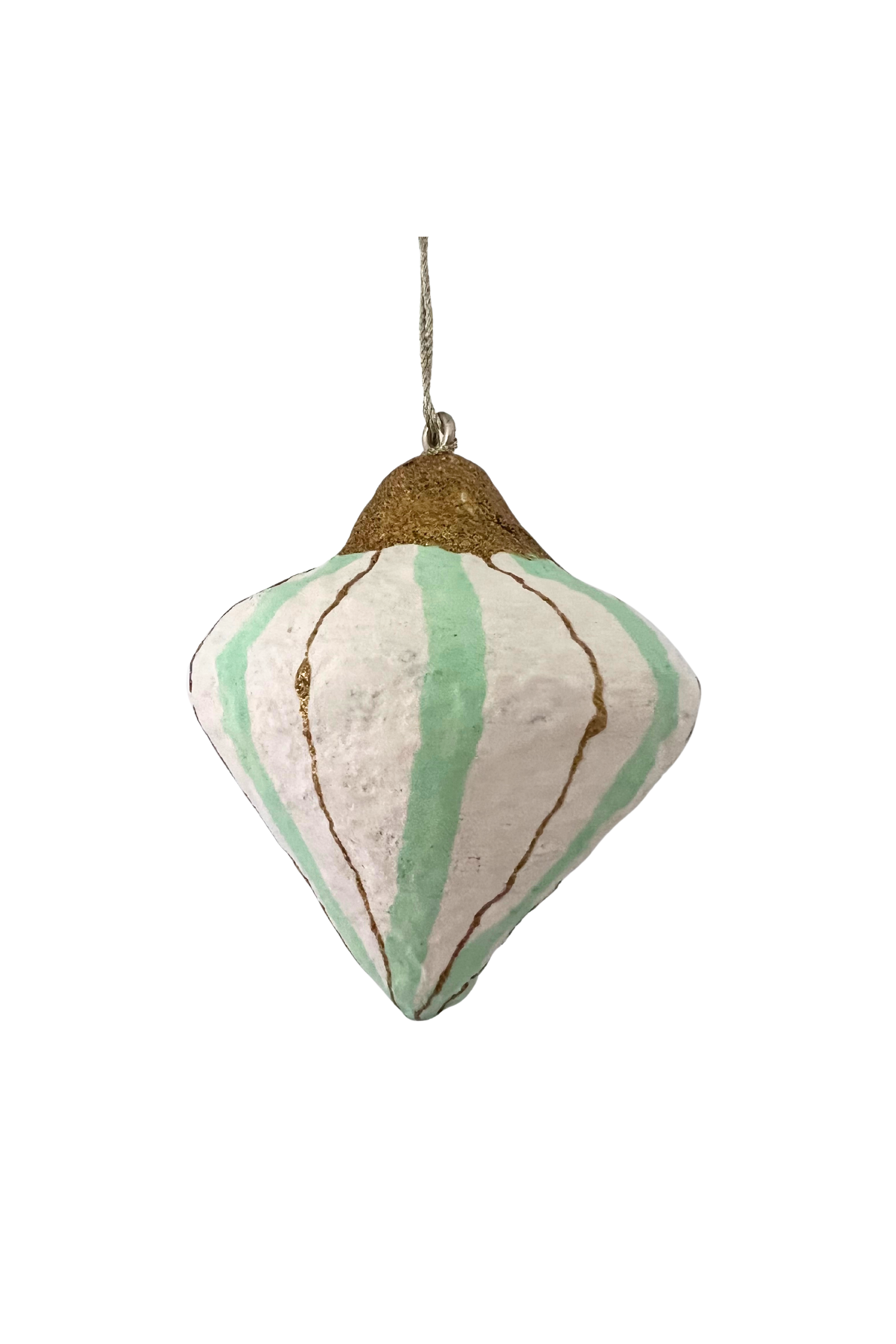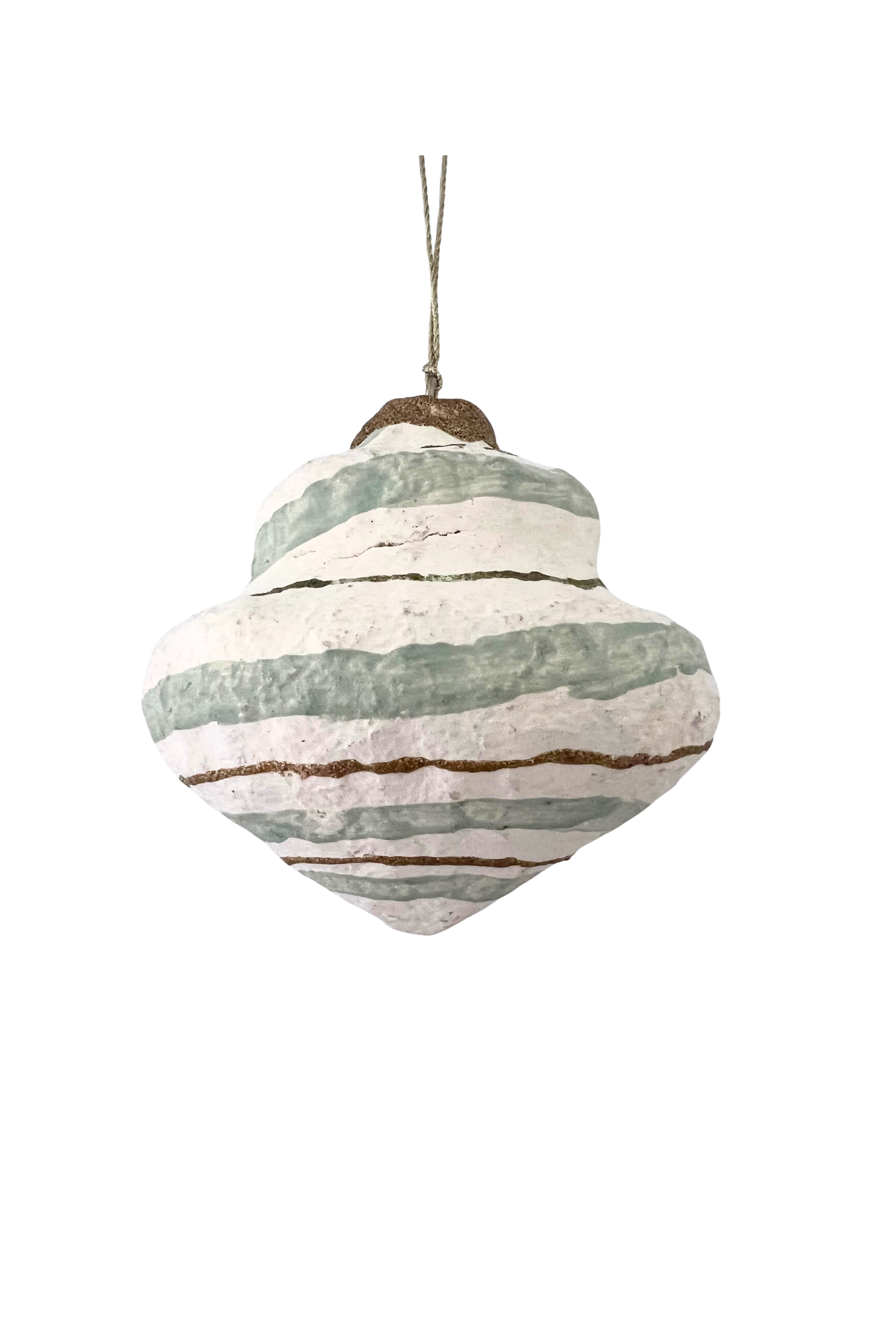 3"H - 3-1/2"H Handmade Paper Mache Ornament w/ Stripes/Dots & Gold Details, Multi Color, 18 Styles (Each One Will Vary)