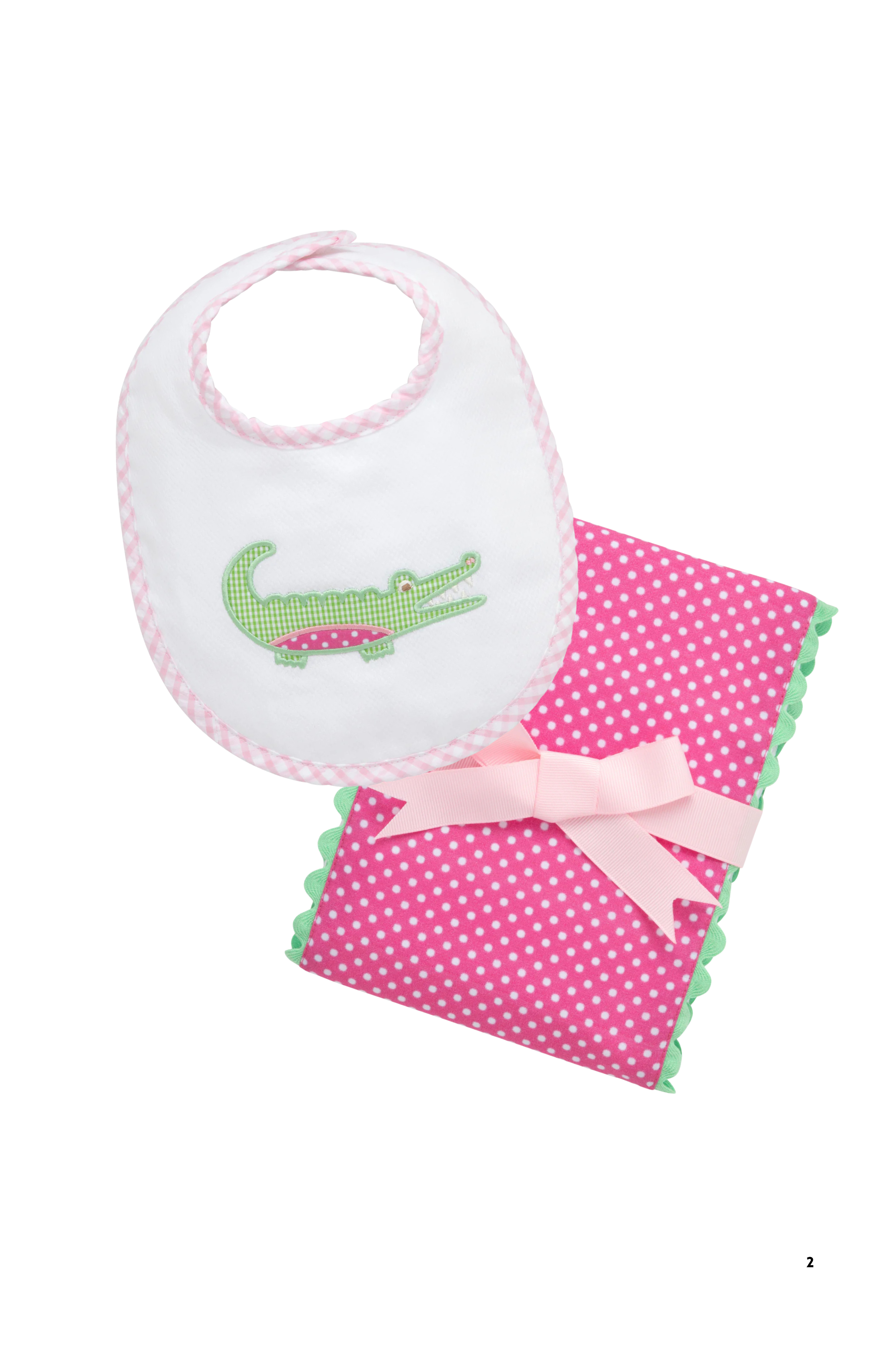Pink Alligator Bib/Burp Cloth Set