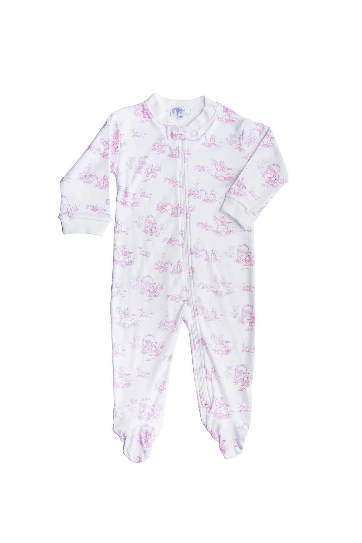 Zip your little girl into this snuggly lightweight Pima Cotton footie. Designed with our Bear toile fabric for a classic look and comfy feel.