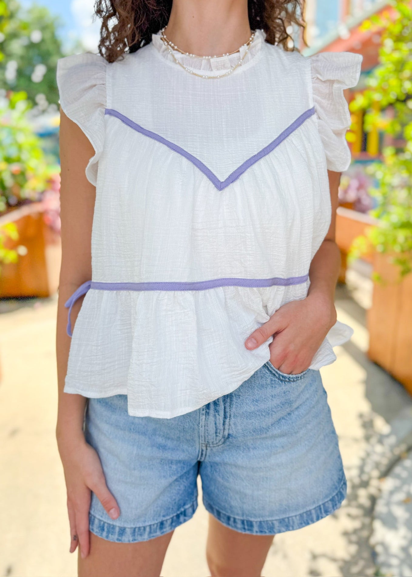 White/Lavender Brock Top