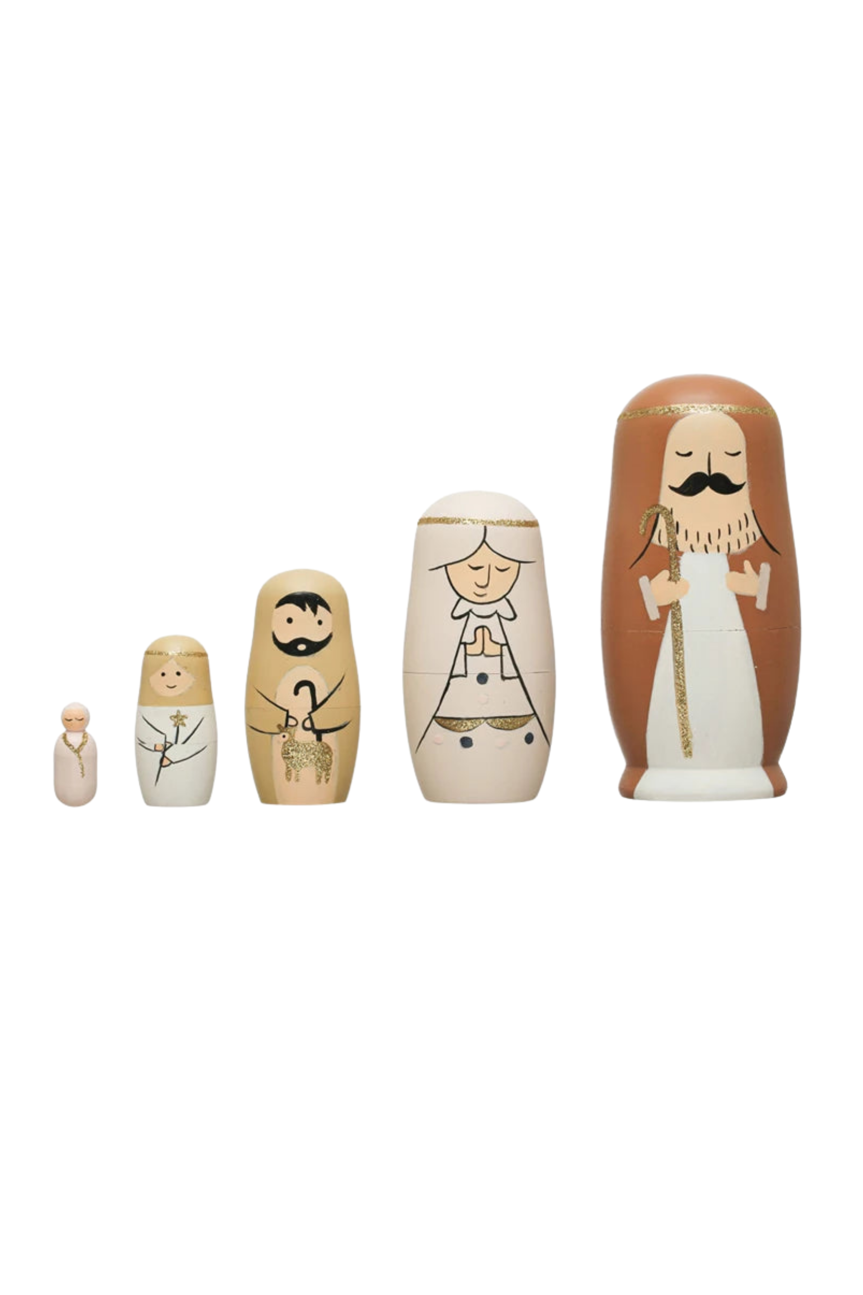 1-1/4"H - 5-1/2"H Hand-Painted Wood Nativity Nesting Dolls, Multi Color, Set of 5