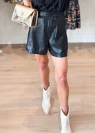 Sleek and structured, the Tailored Short in Black Vegan Leather features a flattering high-waisted silhouette and a gold back zip for a modern finish. Fabricated in our best-selling vegan leather, most loved for its buttery soft hand feel and breathable, lightweight comfort. Pair it with the matching Poppy Pullover for an effortlessly chic set that transitions seamlessly from day to night.