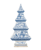 This blue and white decor measures 6" W x 3" D x 12 1/4" H. Whether gracing your mantel or your tabletop, our Christmas ceramic tree seamlessly transitions from holiday to everyday decor, making it a versatile gem all year round.