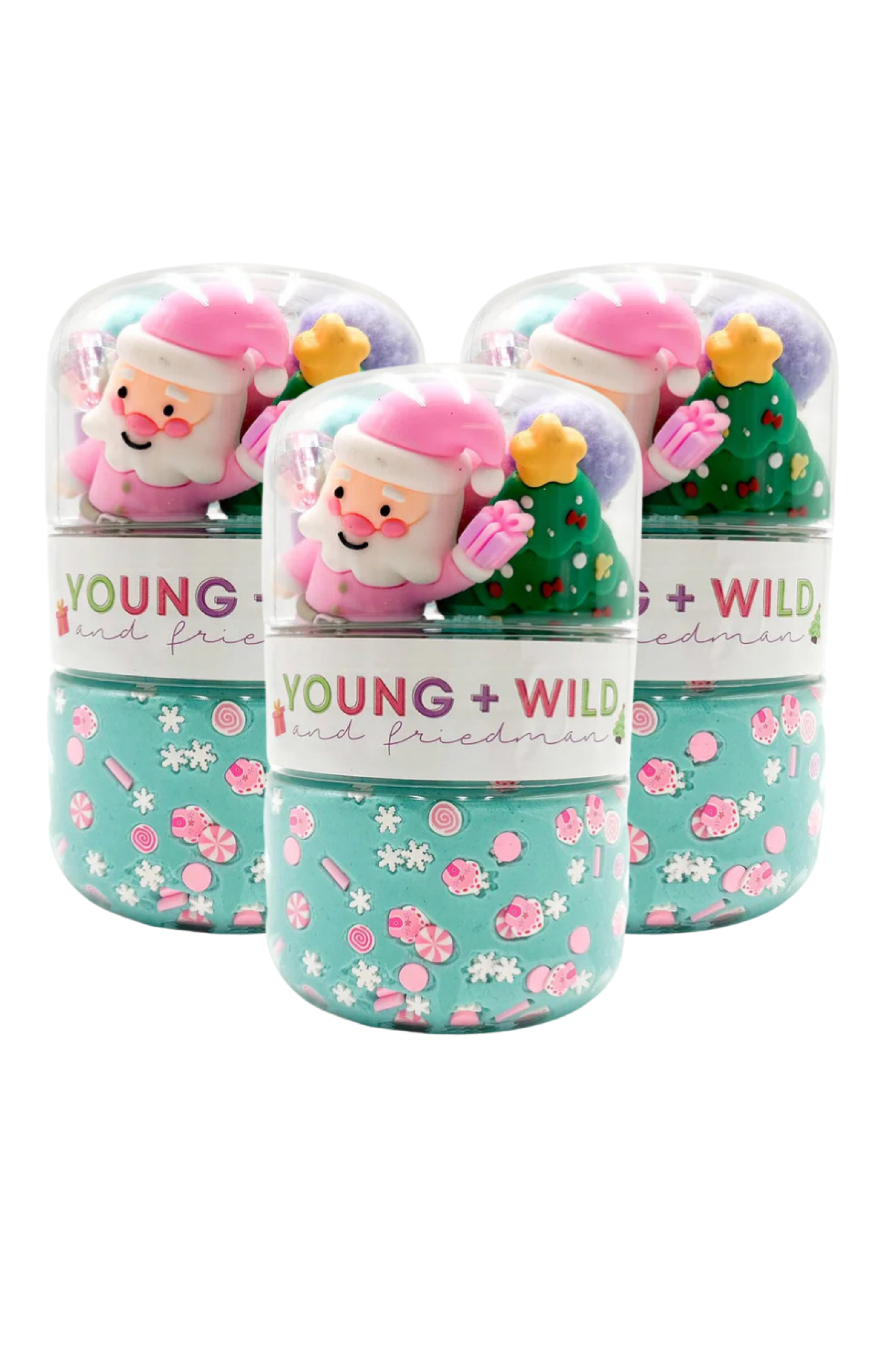 Our Pastel Christmas Grab & Go Dough Jar features one side filled with our signature homemade sensory dough and the other packed with themed trinkets for endless imaginative play. Perfect for stockings, party favors, or on-the-go fun!
