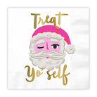 - White napkin with "Treat Yo Self" in gold foil lettering with Santa graphic