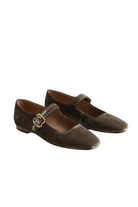 Heel Height: .97 cmClosure: BuckleToe: PointedMaterials: Leather, Velvet, & SyntheticInsole: Padded Leather