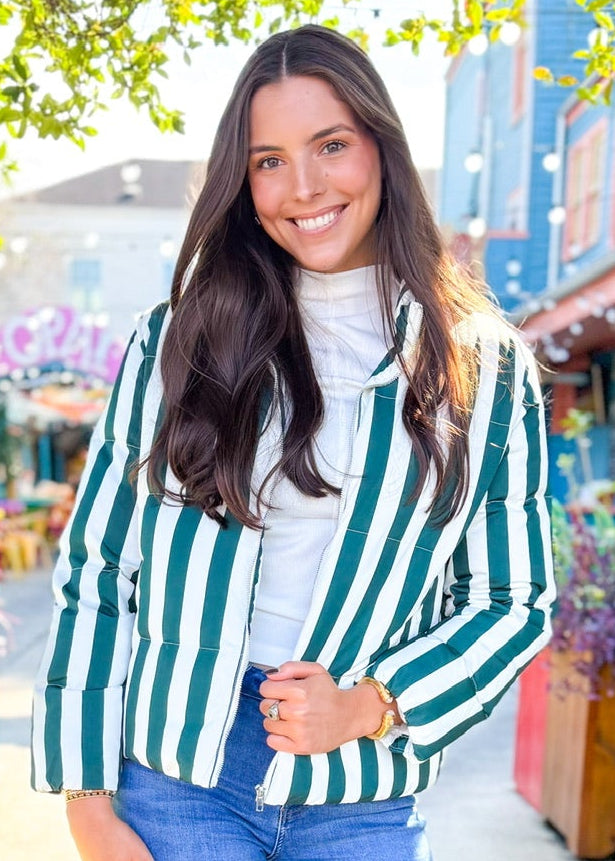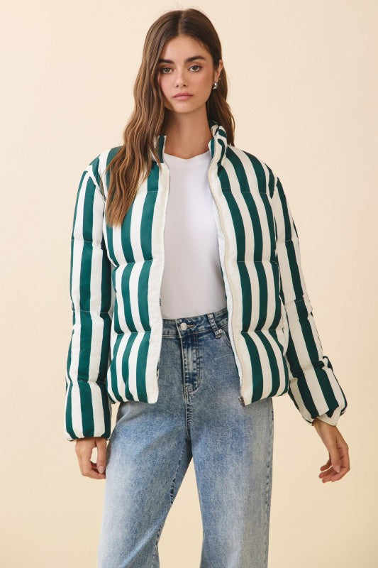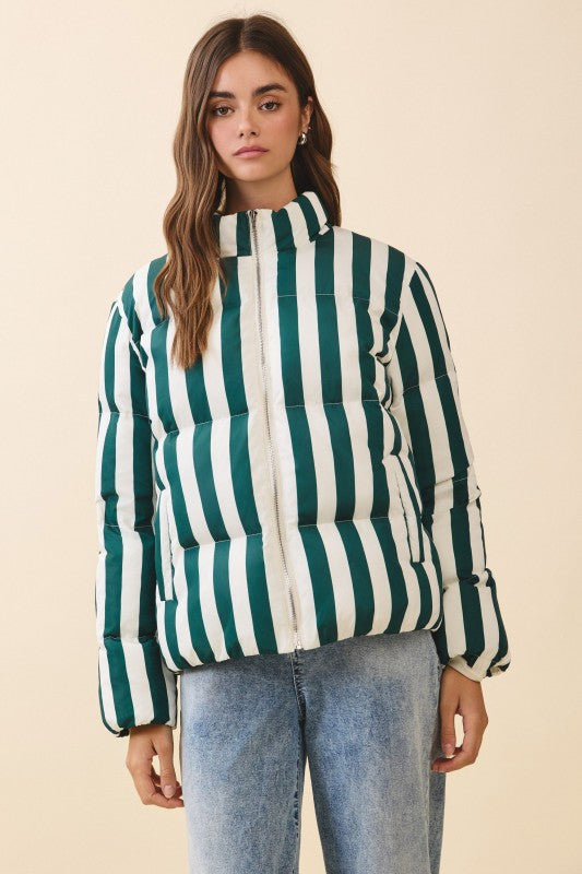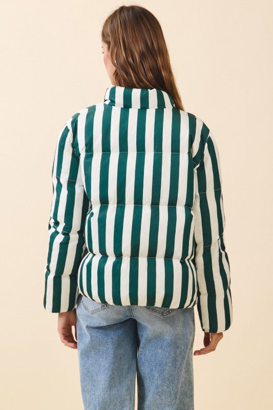 Green Stripe Jade Puffer Jacket
