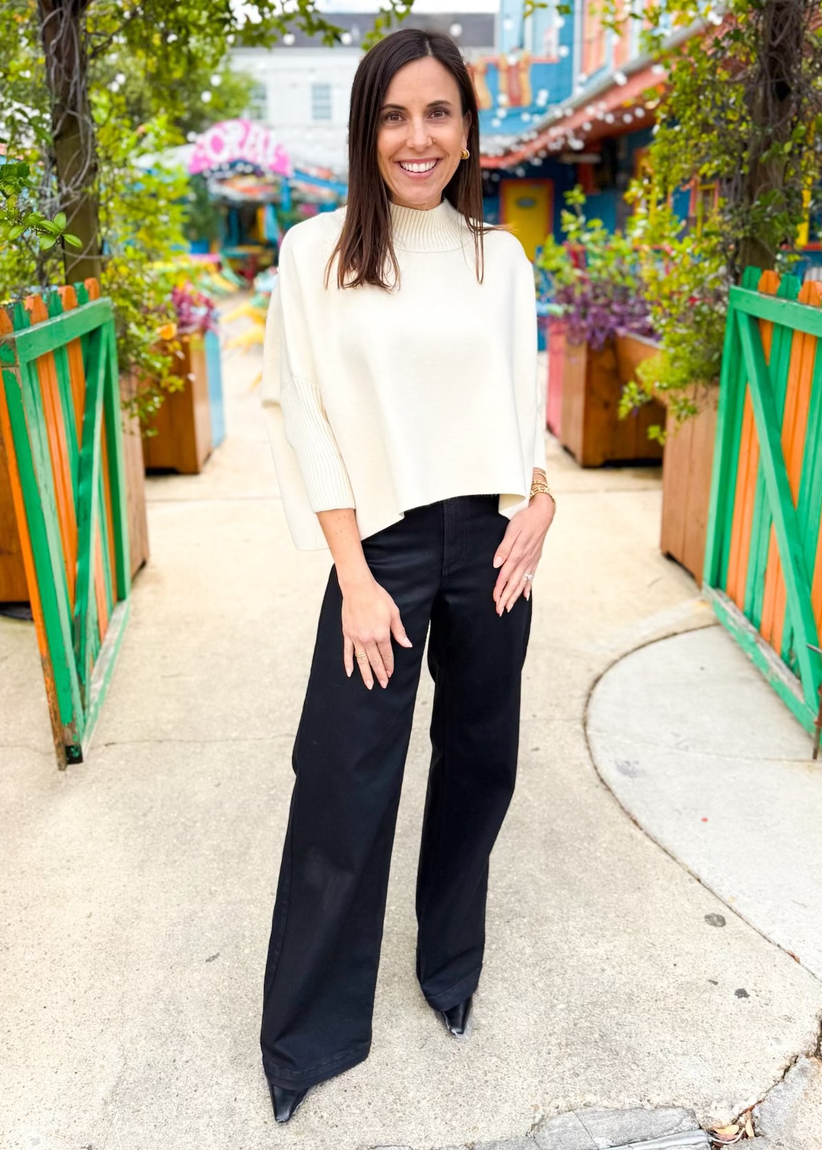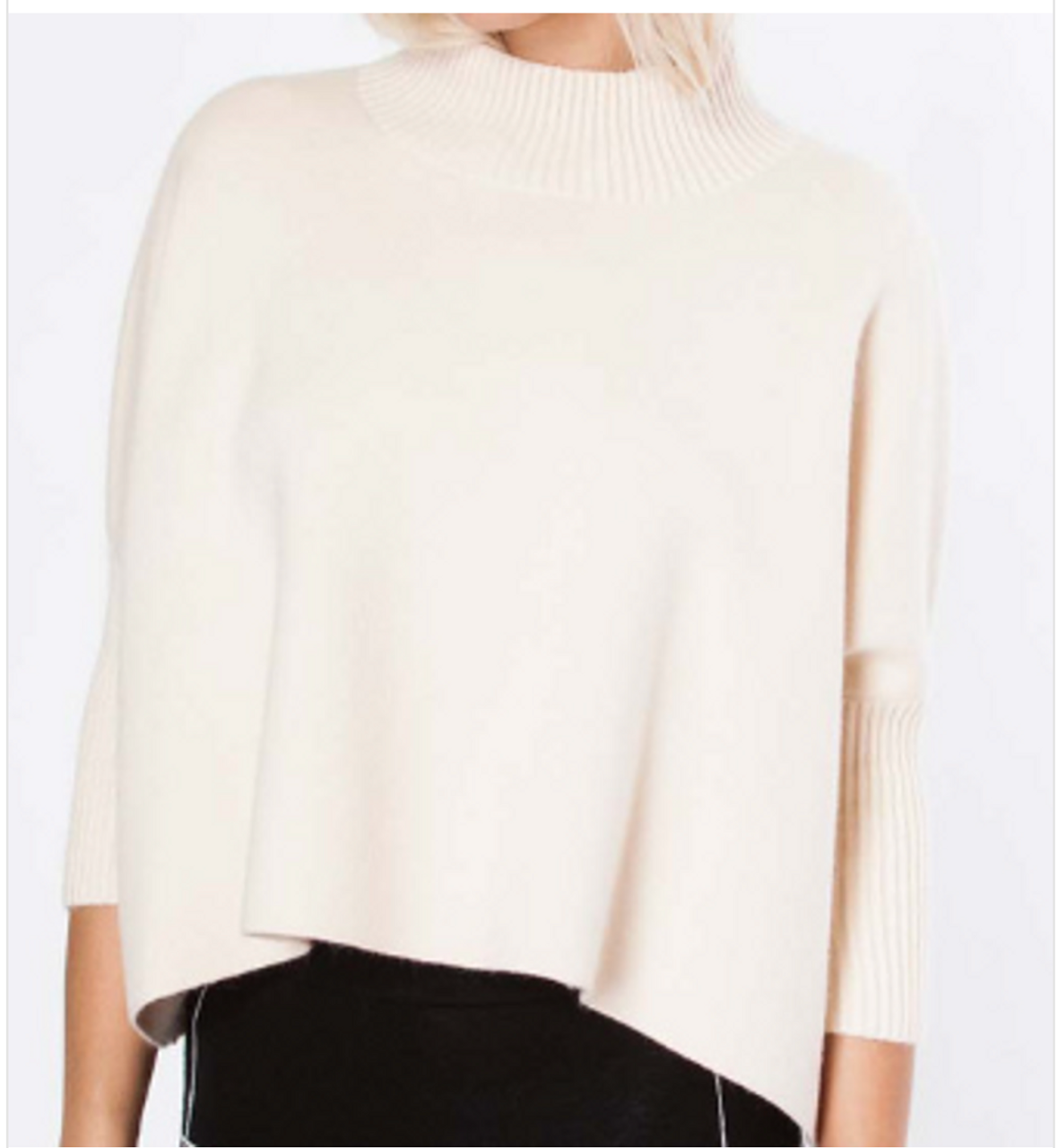Oversized boxy sweater with fitted rib turtleneck & 3/4 sleeves