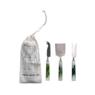 6-3/4"L - 7-1/4"L Stainless Steel Cheese Utensils w/ Marbled Resin Handles, Green & White, Set of 3 in Printed Drawstring Bag (Each One Will Vary)