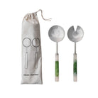 10-1/4"L Stainless Steel Salad Servers w/ Marbled Resin Handles, Green & White, Set of 2 in Printed Drawstring Bag (Each One Will Vary)