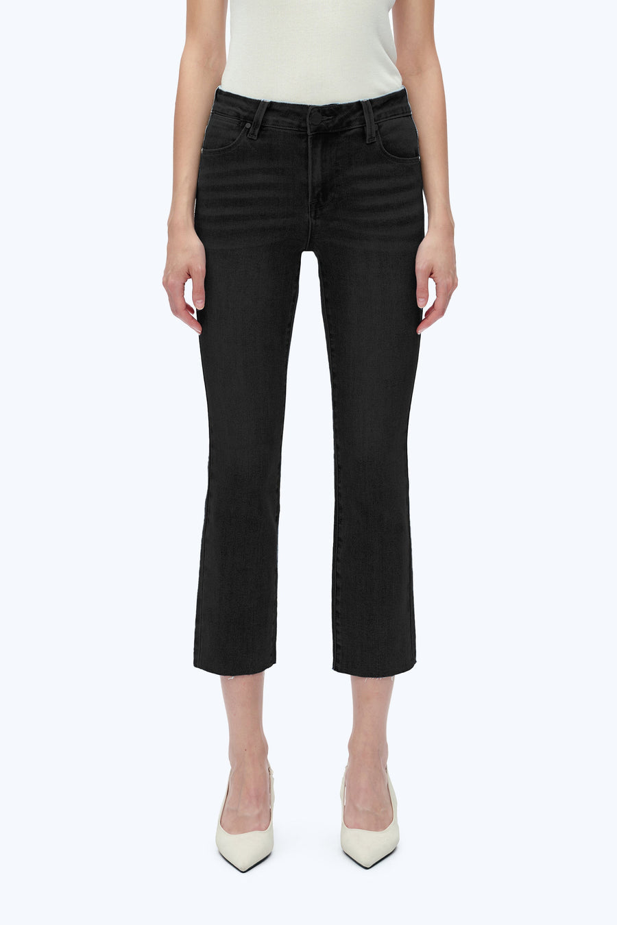 Super comfortable mid-rise straight-leg jeans made from incredibly stretchy denim. These jeans feature a modern hidden front pocket design, 5 pockets, zip fly, whiskering, fading, and a relaxed raw hem