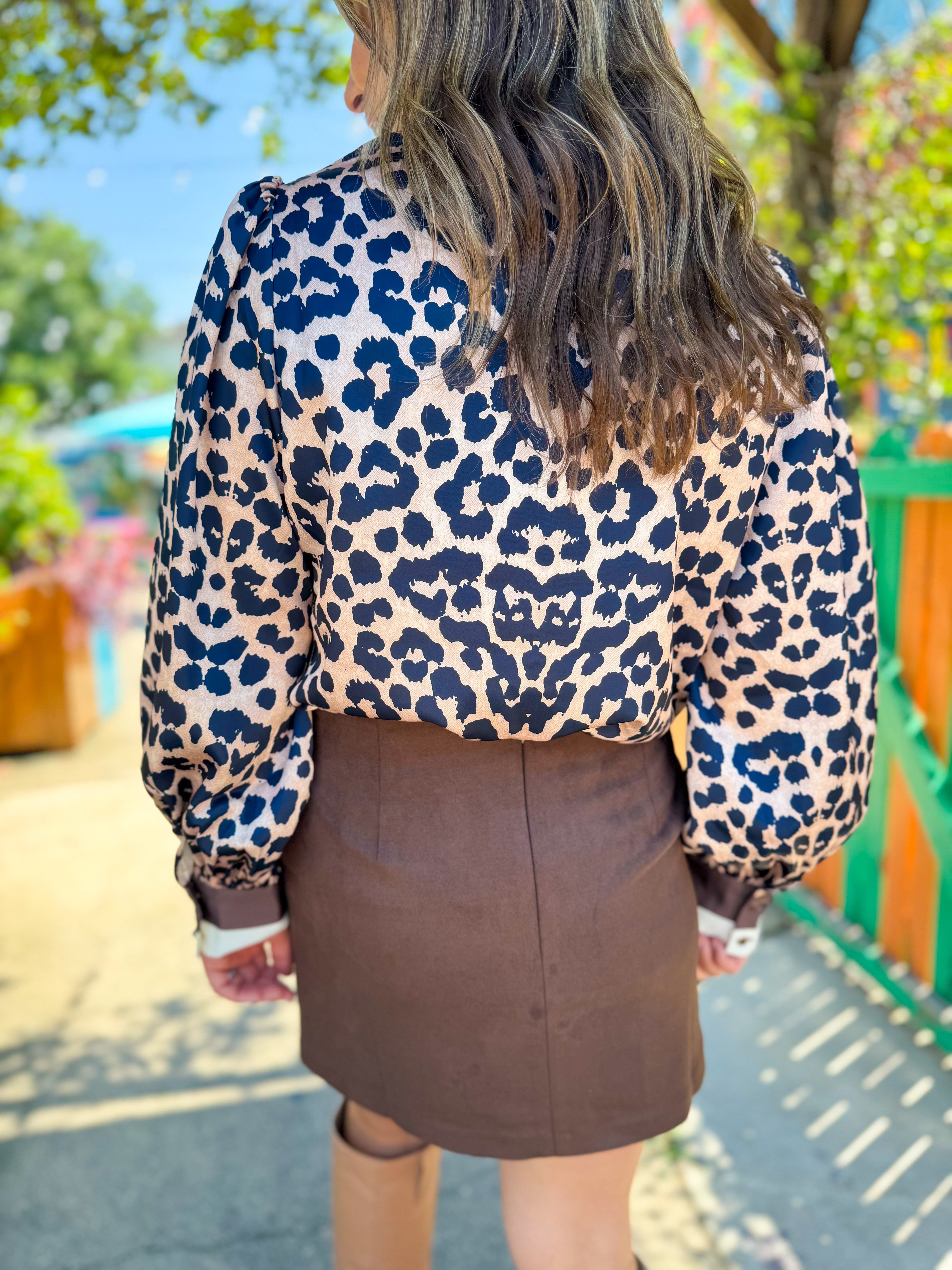 Navy and Cream Leopard Print Blouse