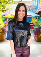 Black Sequin Posey Top