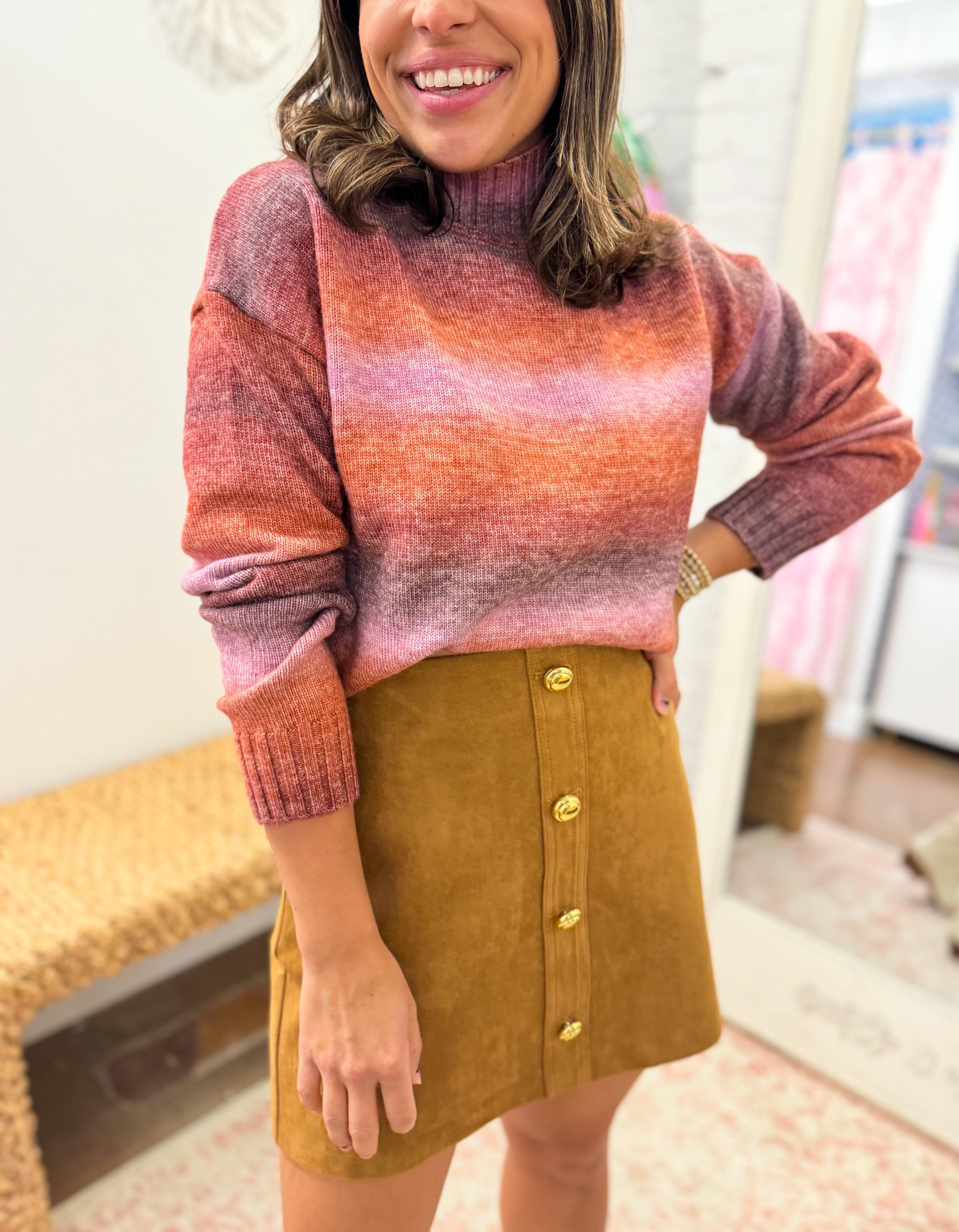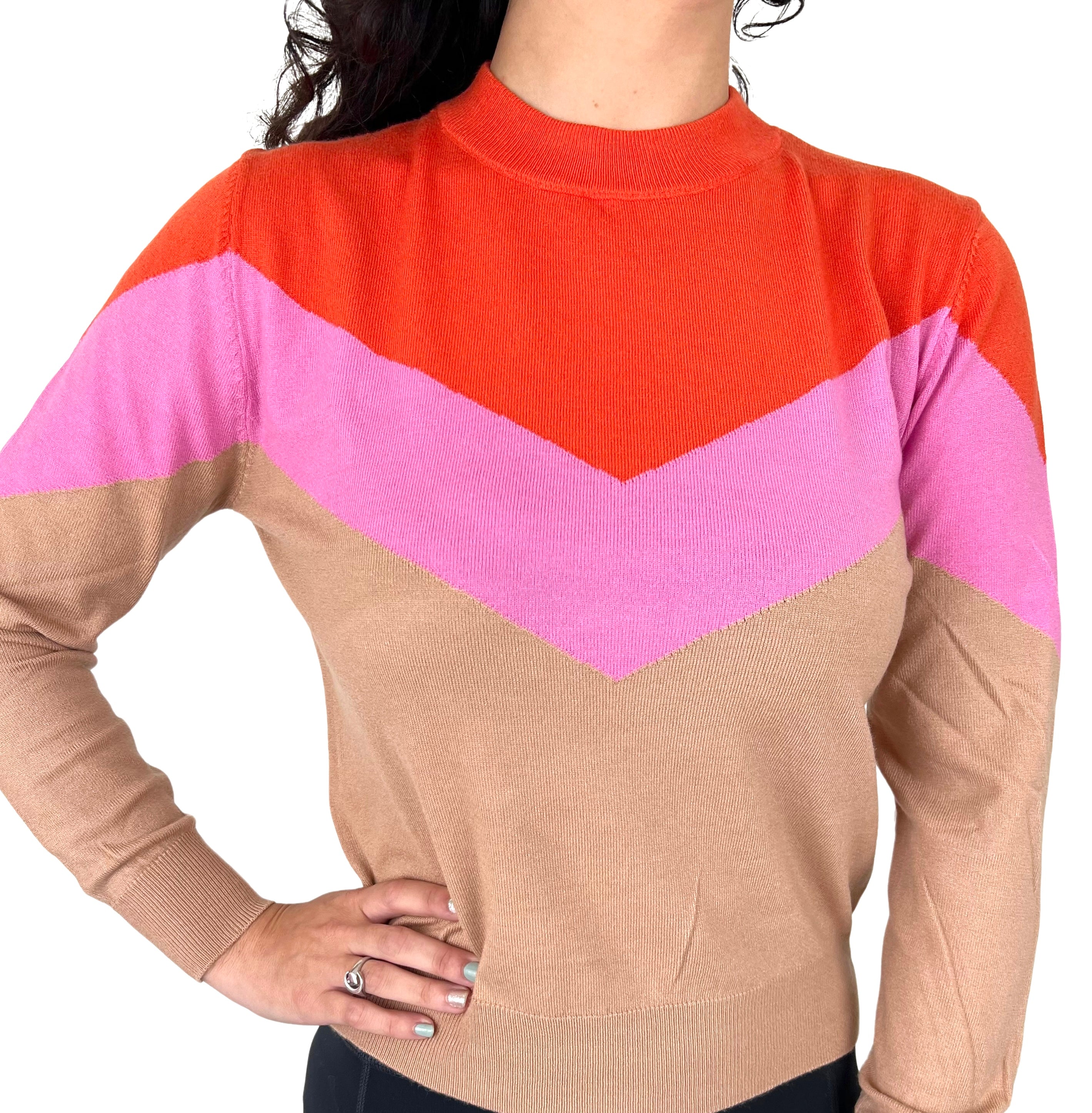 Latte/Fuchsia Colorblock Leone Sweater