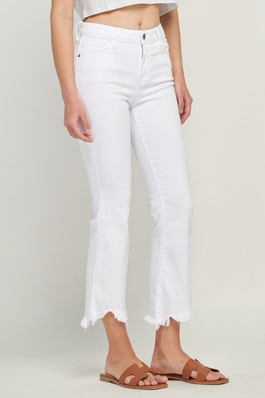 White High Waist Cropped Flare Happi Jean