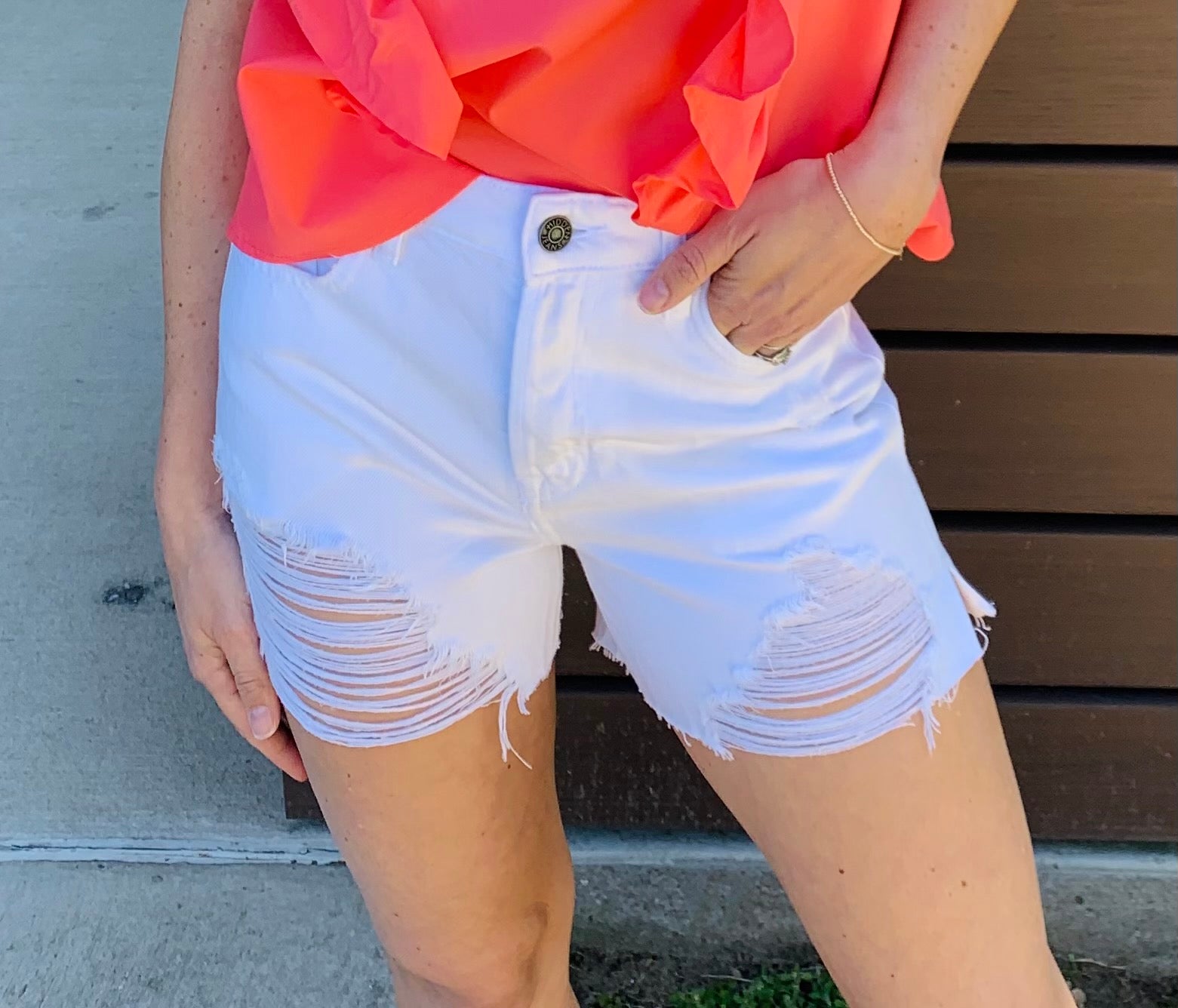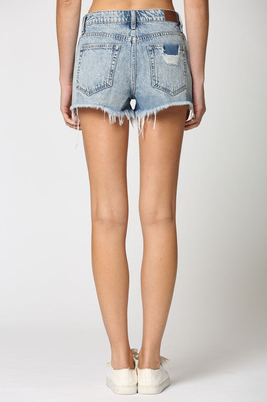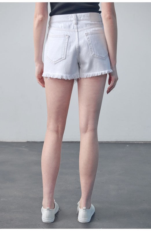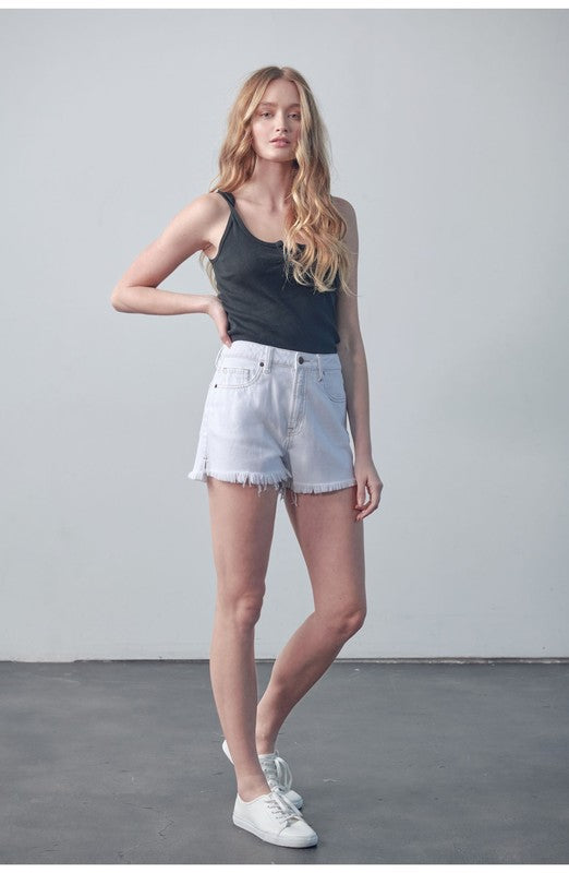 White Side Slit Frayed Hem Finn Short