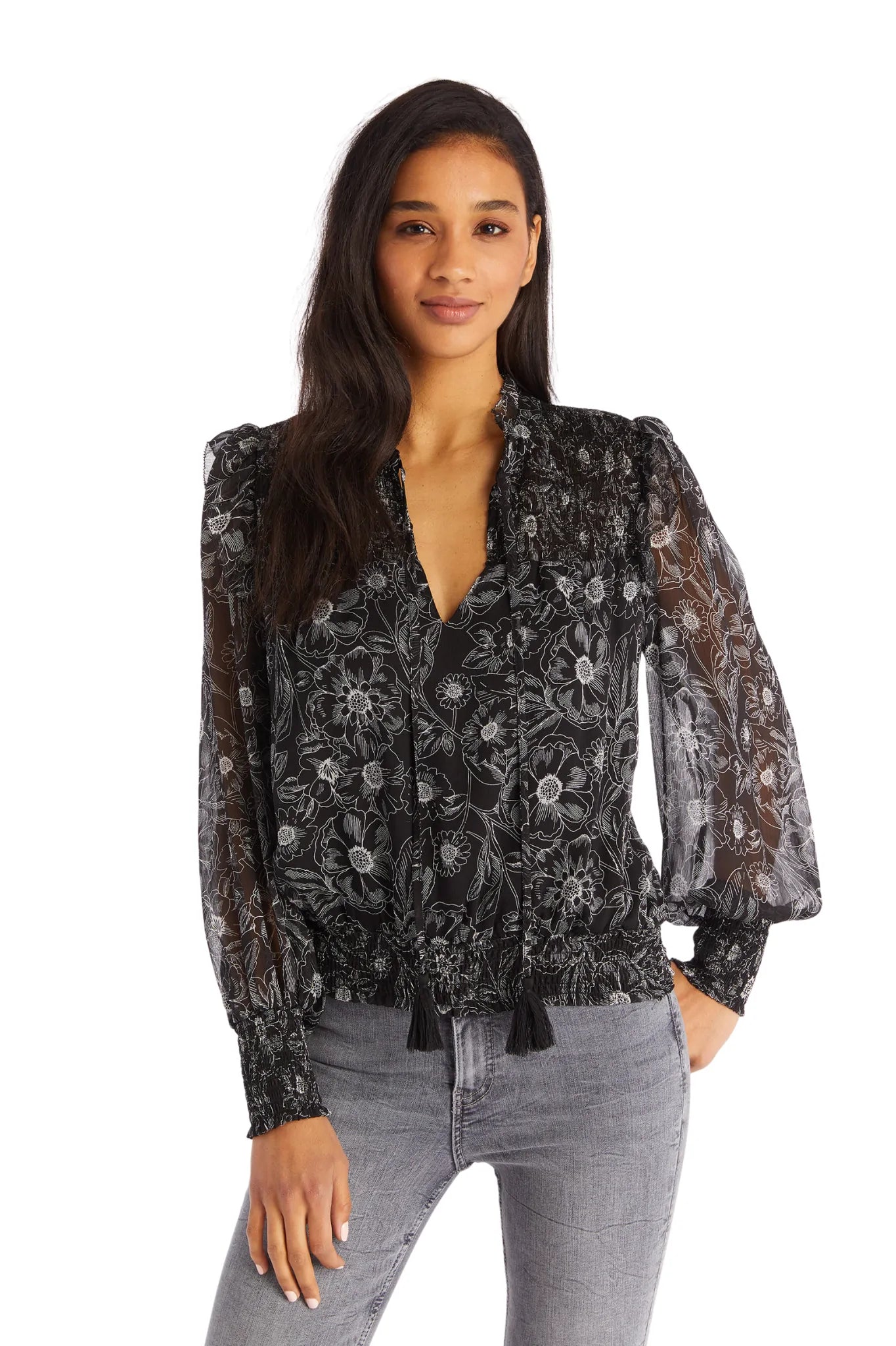 Black/White Floral L/S Demi Blouse