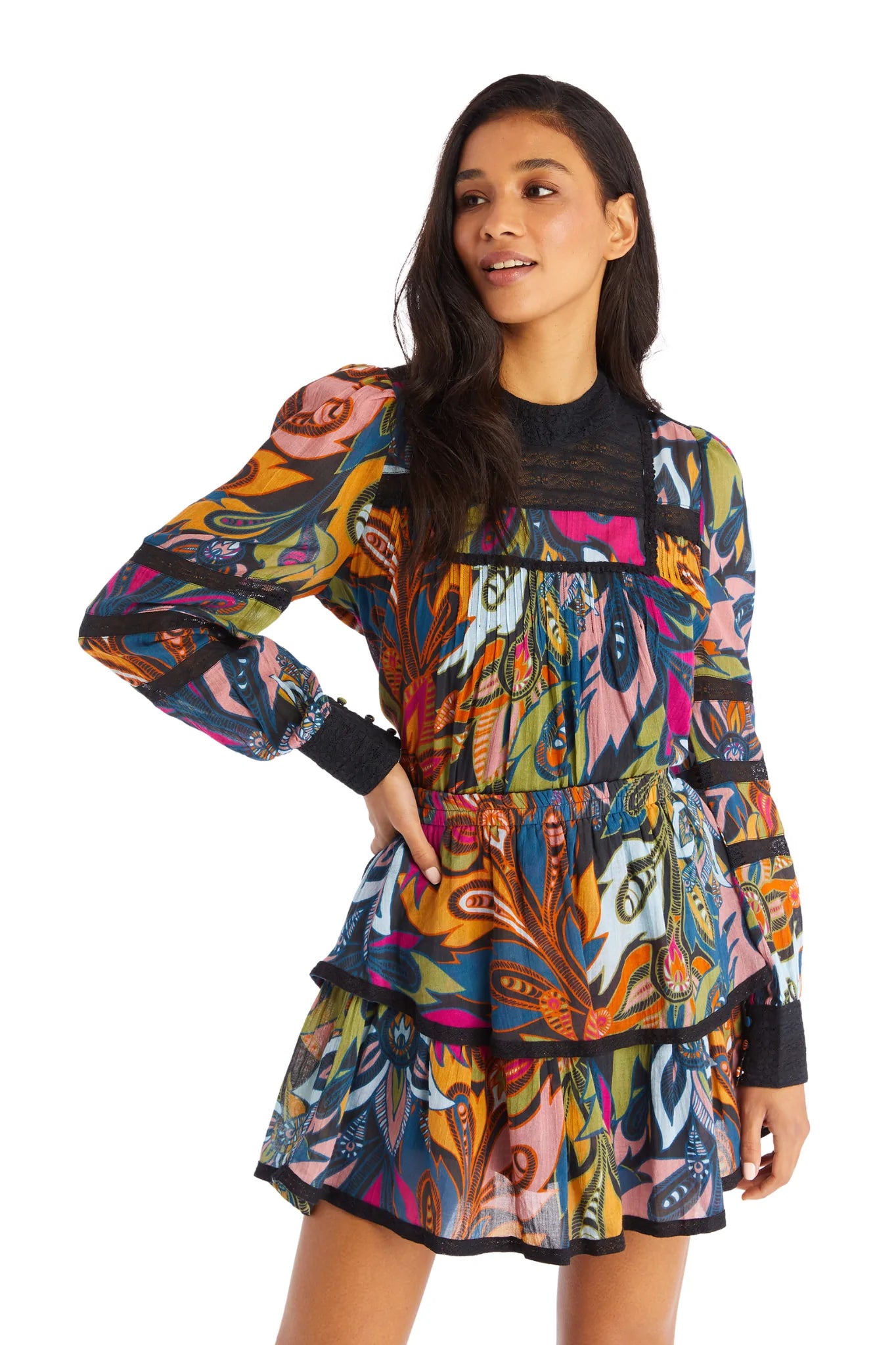 Black/Ivory Floral Dylan Mini Dress
