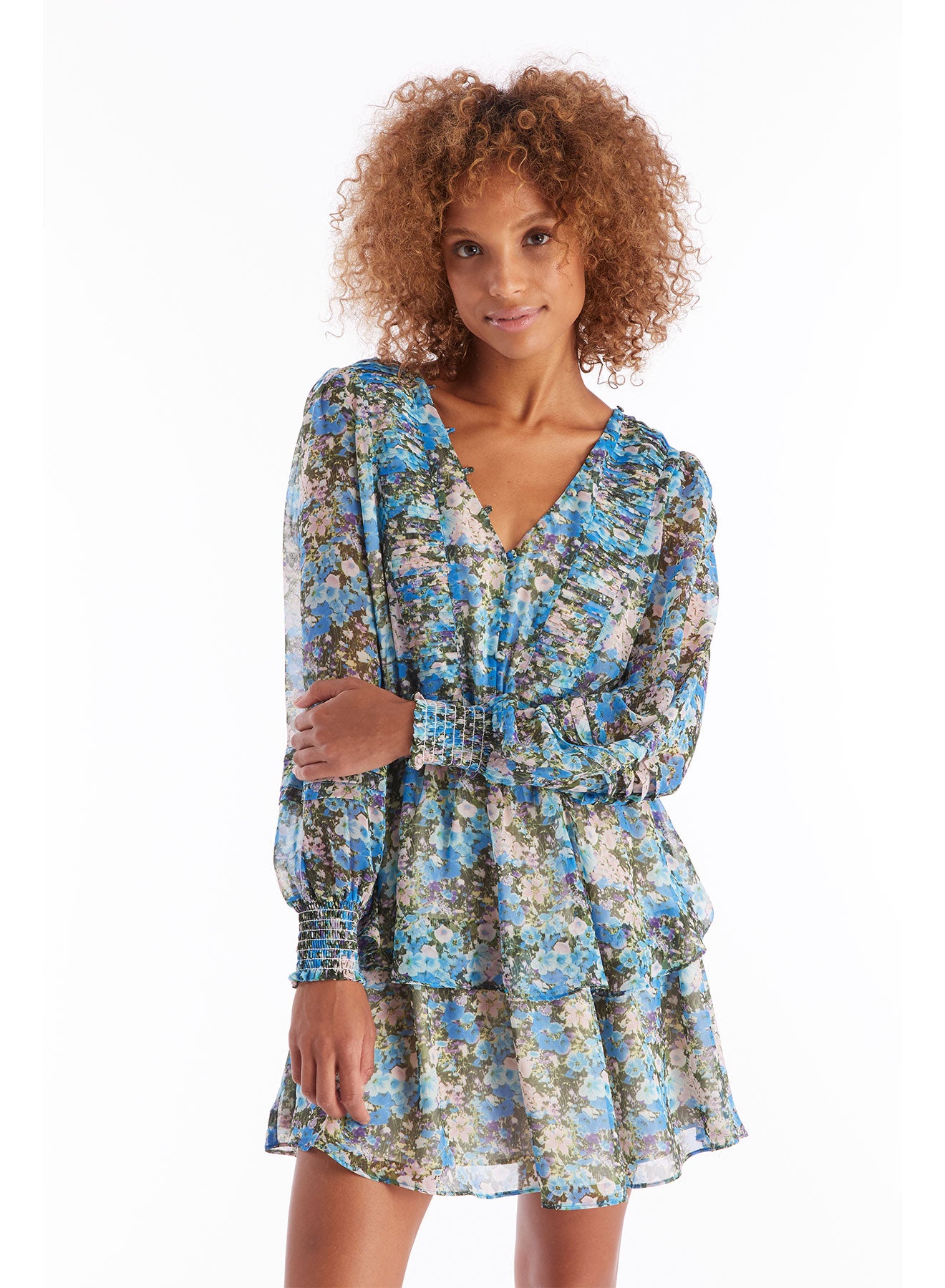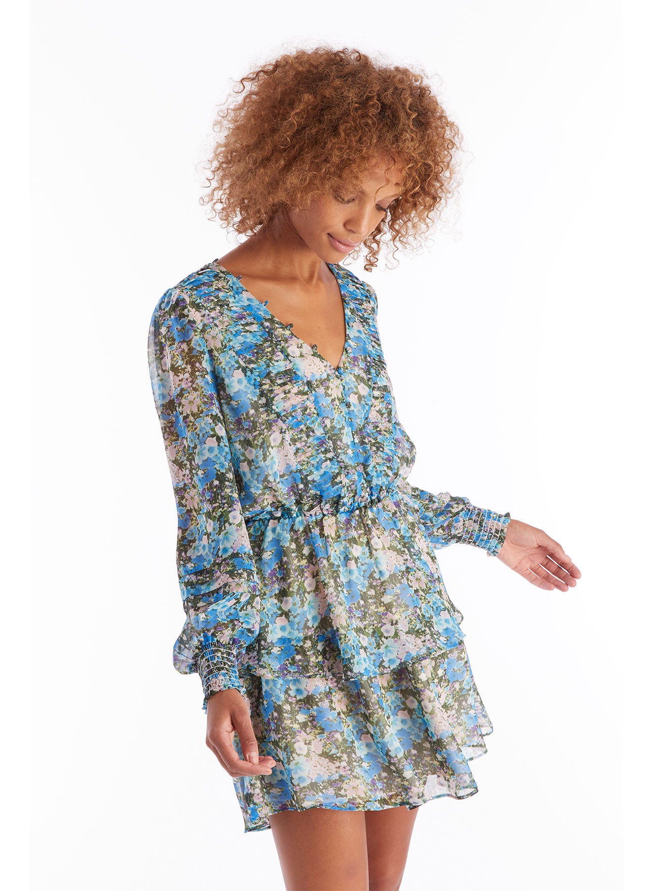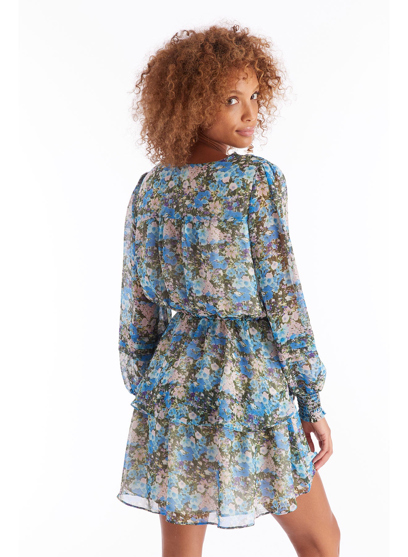 Blue Floral Smocked Mini Dress