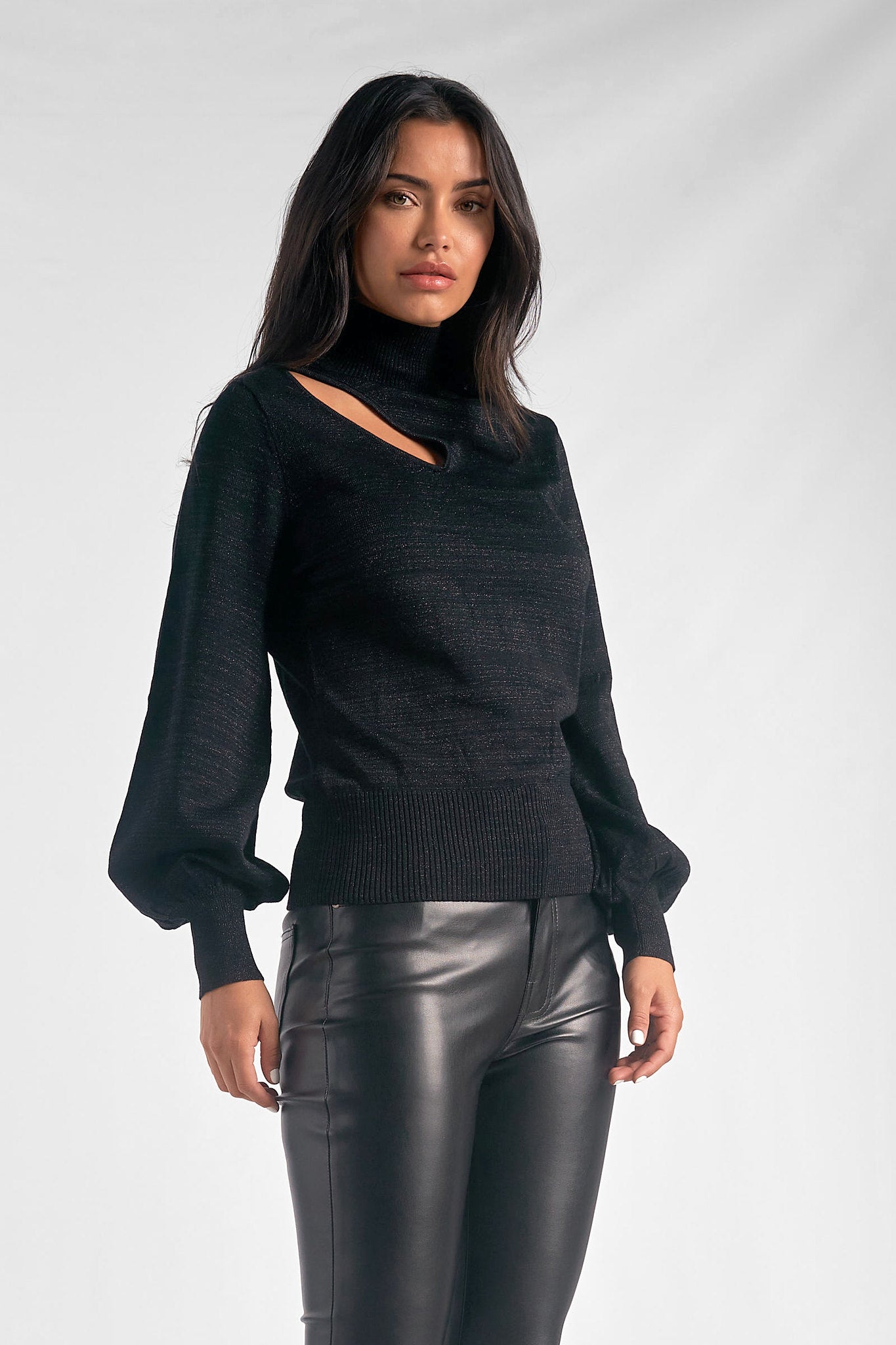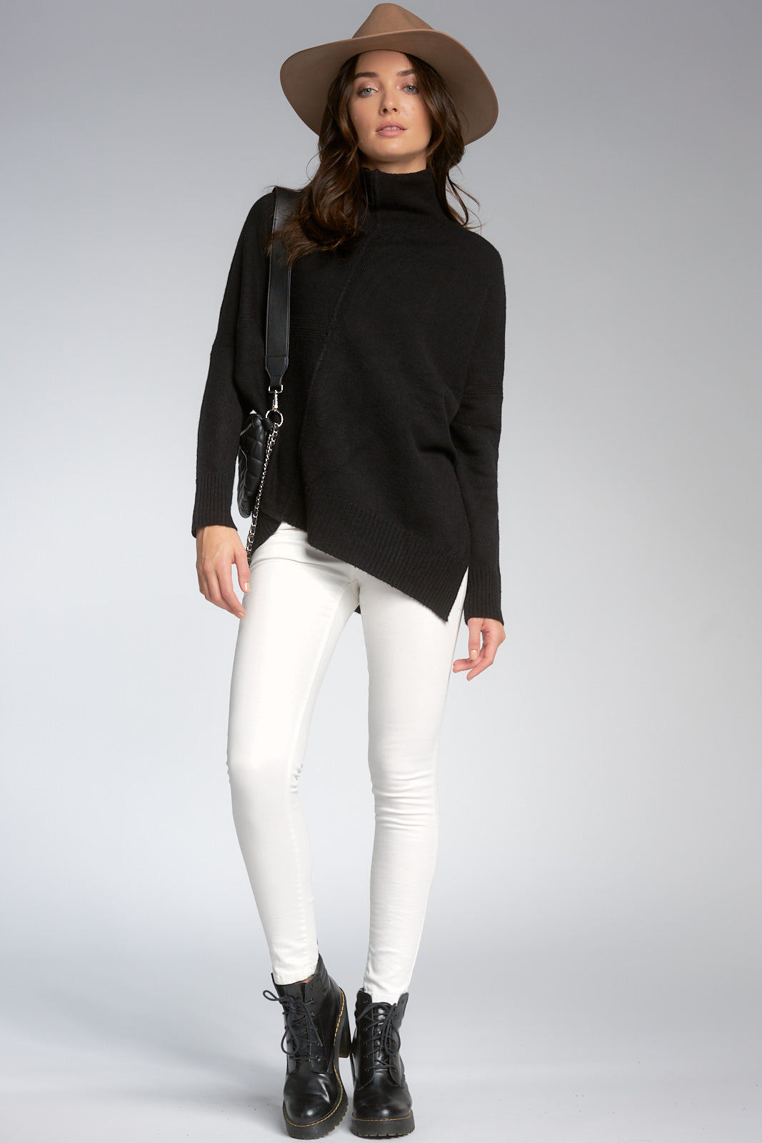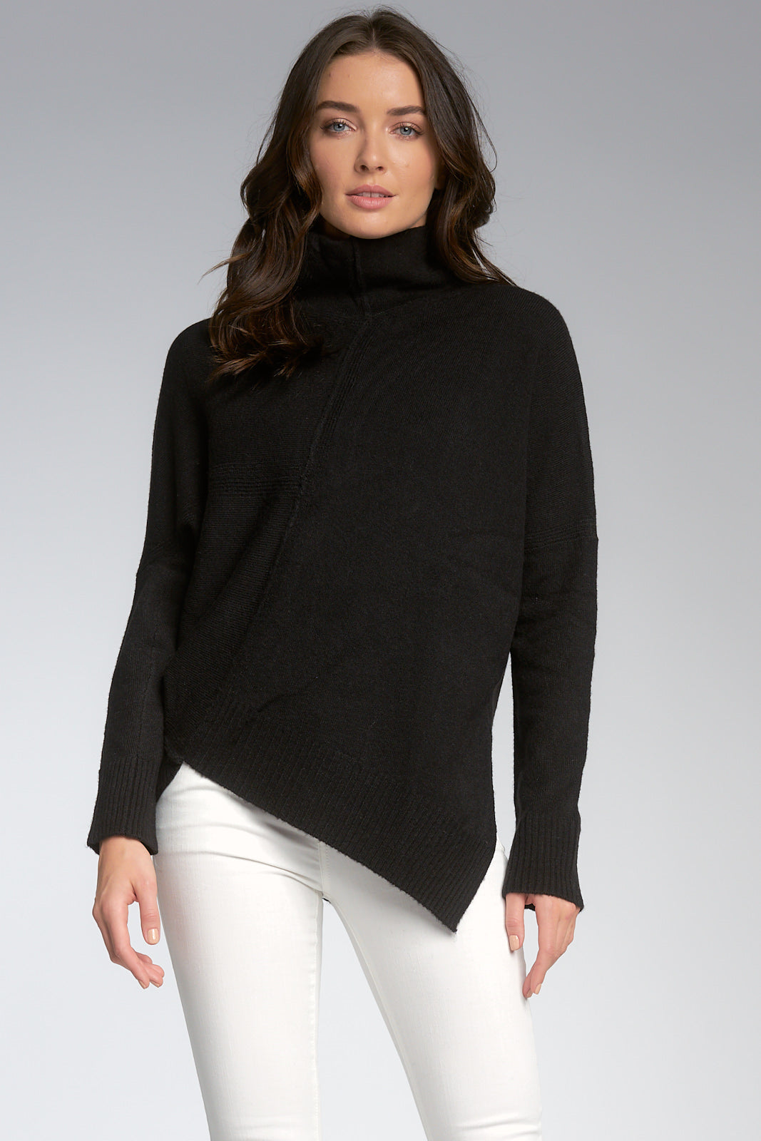 Black Asymmetrical L/S Turtleneck Sweater