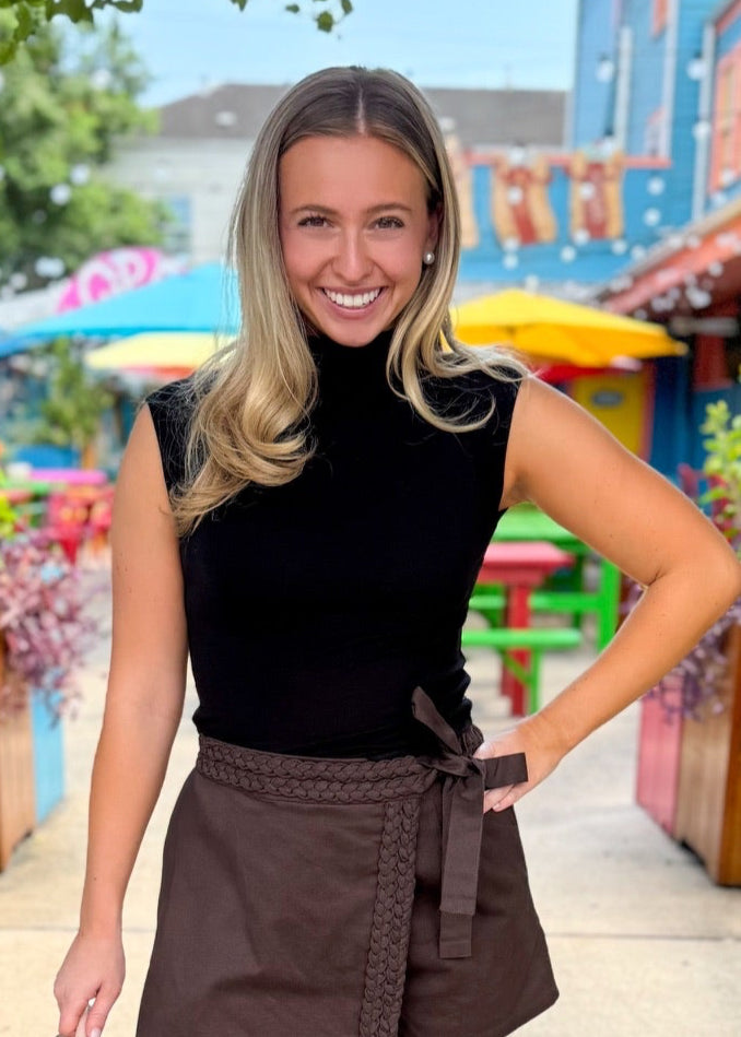 Black Gianna Open Back Mock Neck Top