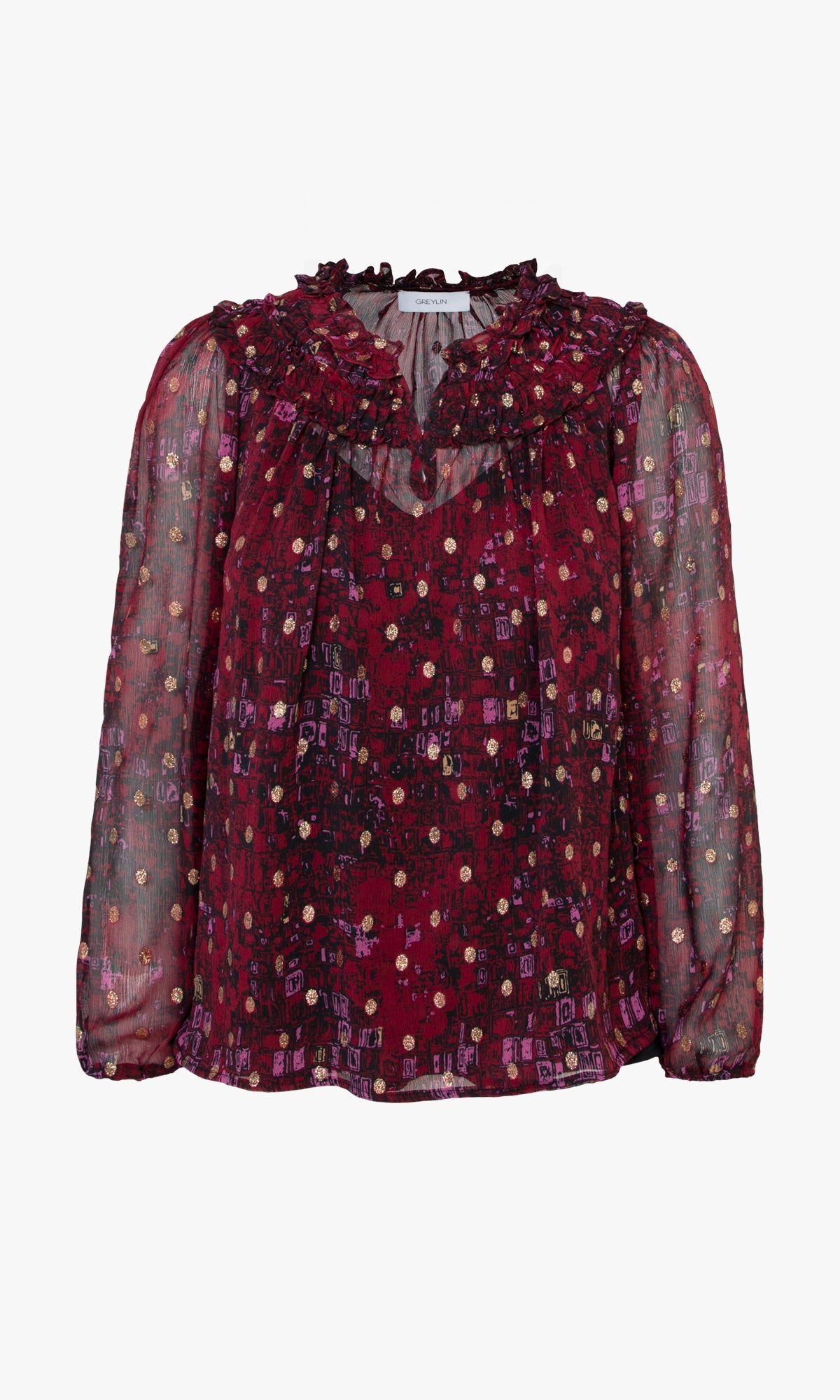 Burgundy Tina Lurex Chiffon Blouse