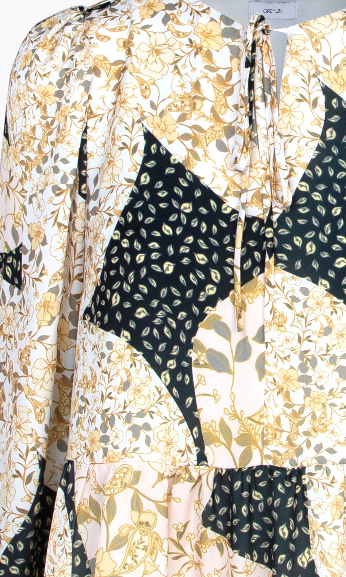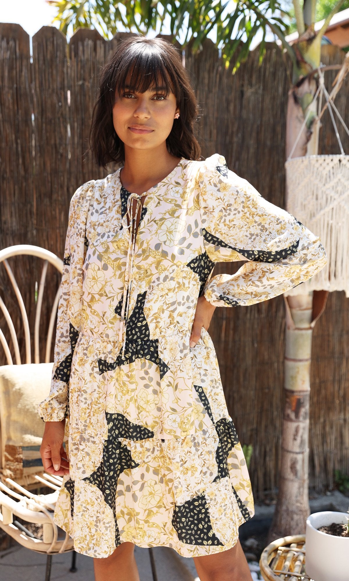 Black/Yellow Patchwork Tiered Skylar Dress