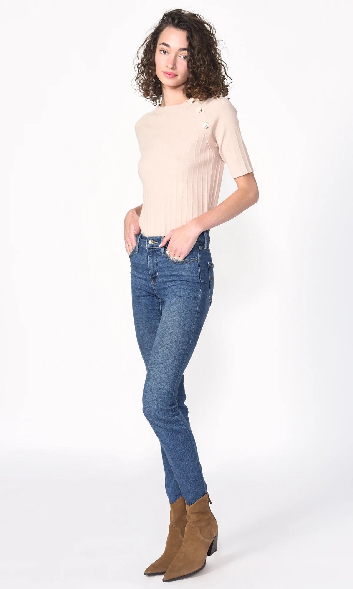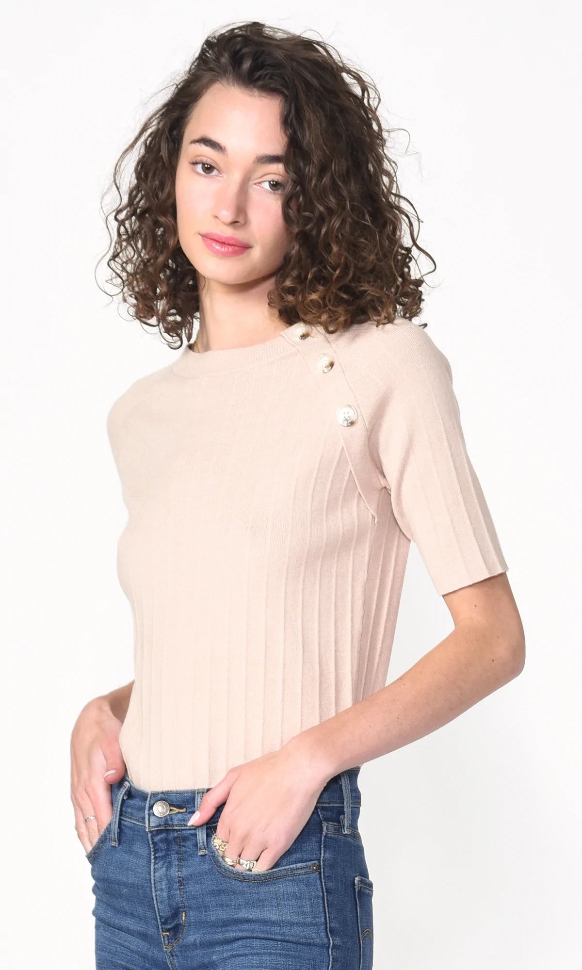 Beige Ellis Sweater Knit Button Top