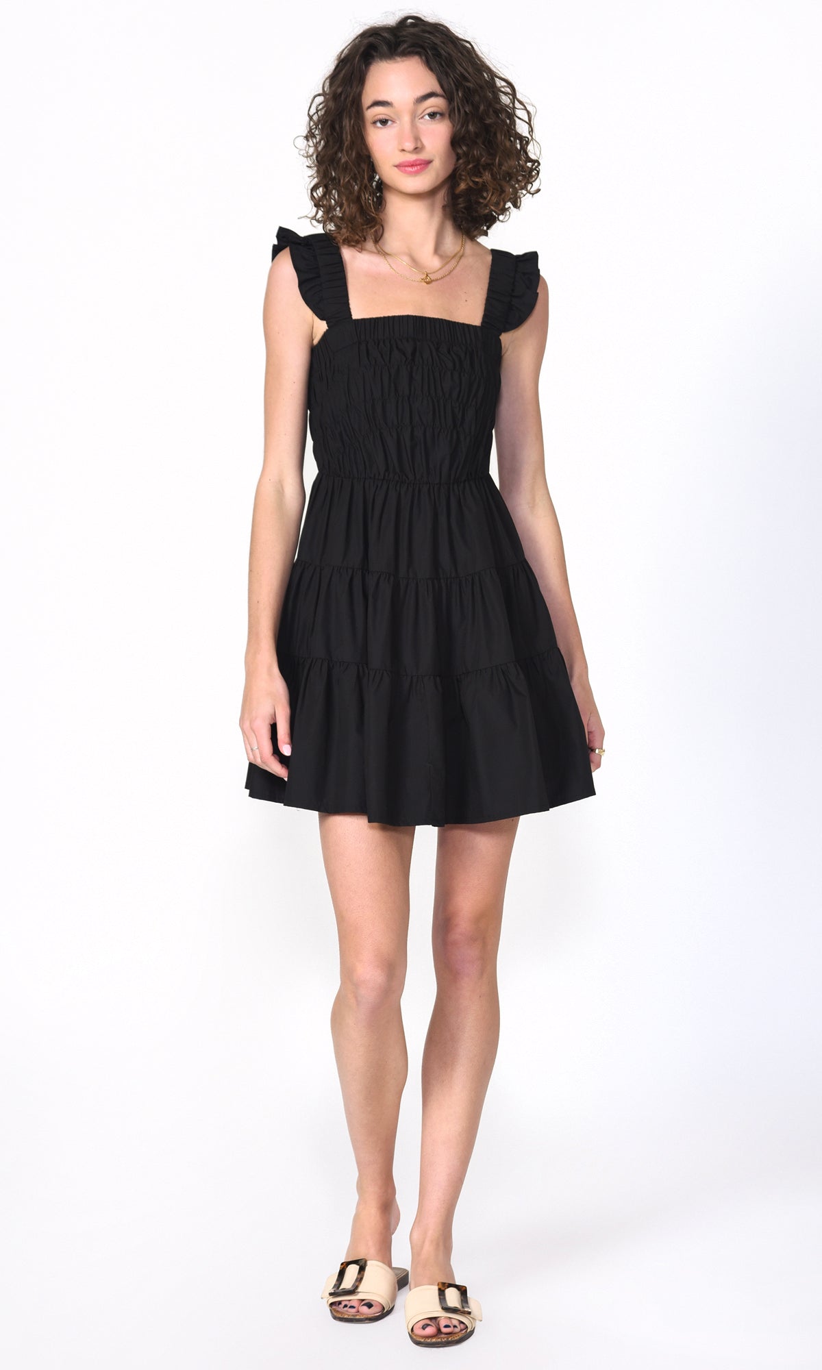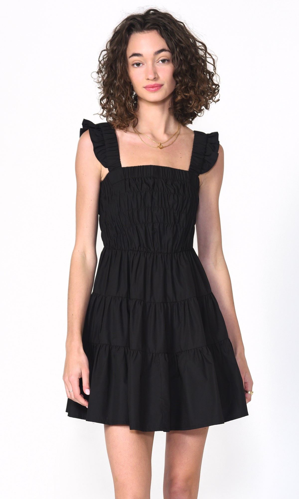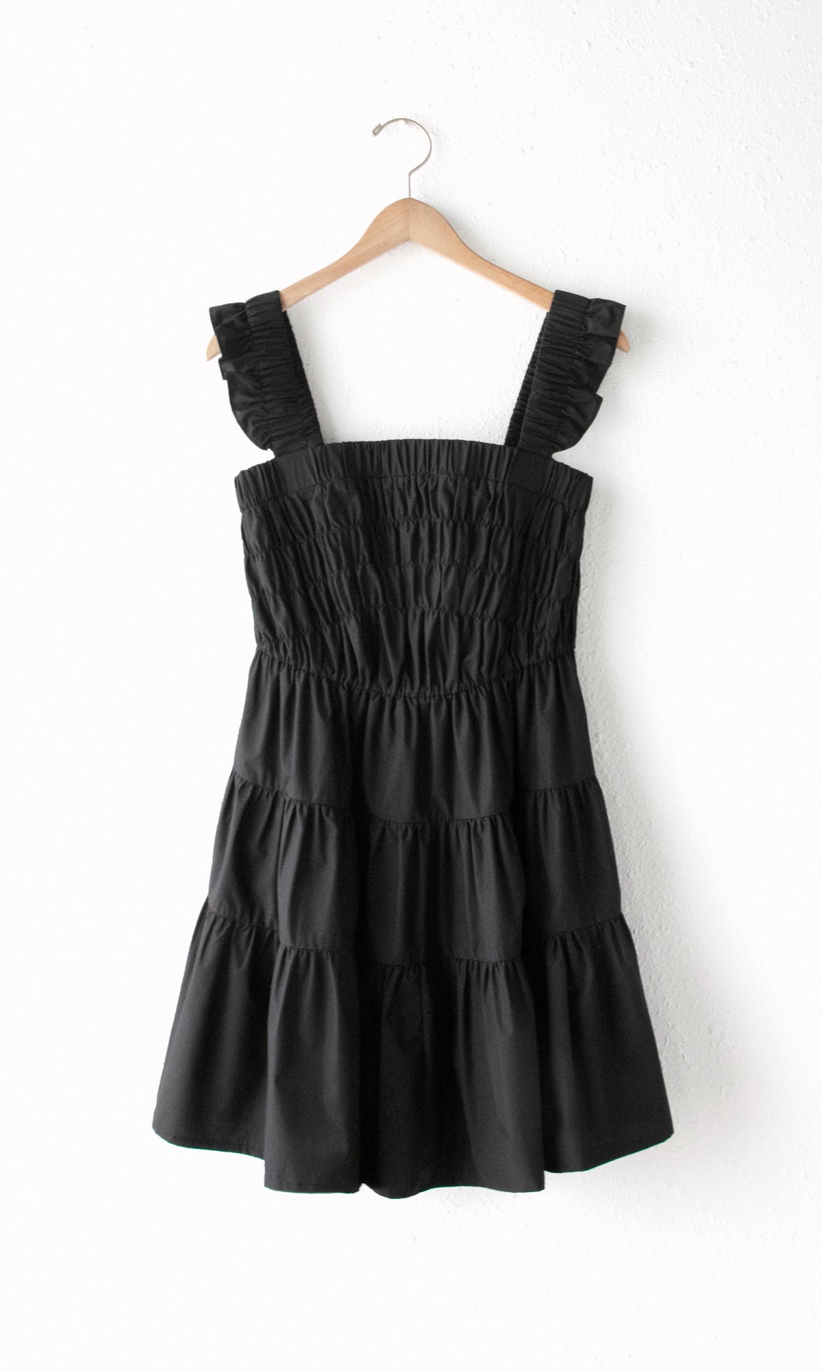 Black Smocked Poplin Pria Mini Dress