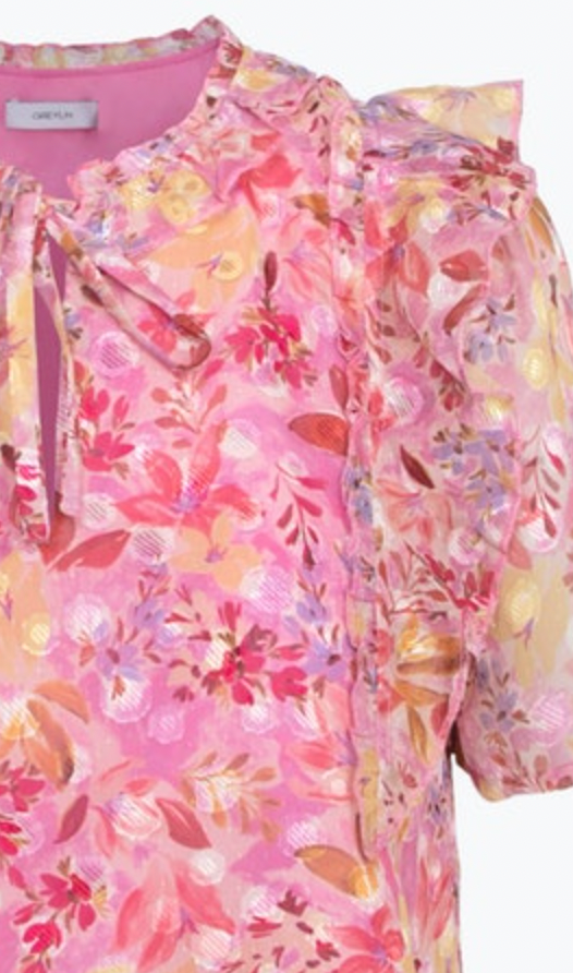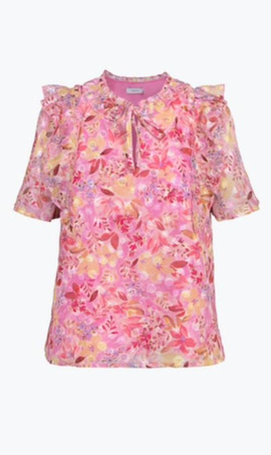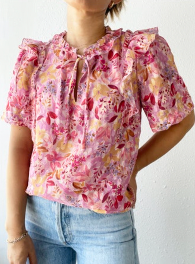 Bubble Pink Ruffled Chiffon Jeany Top