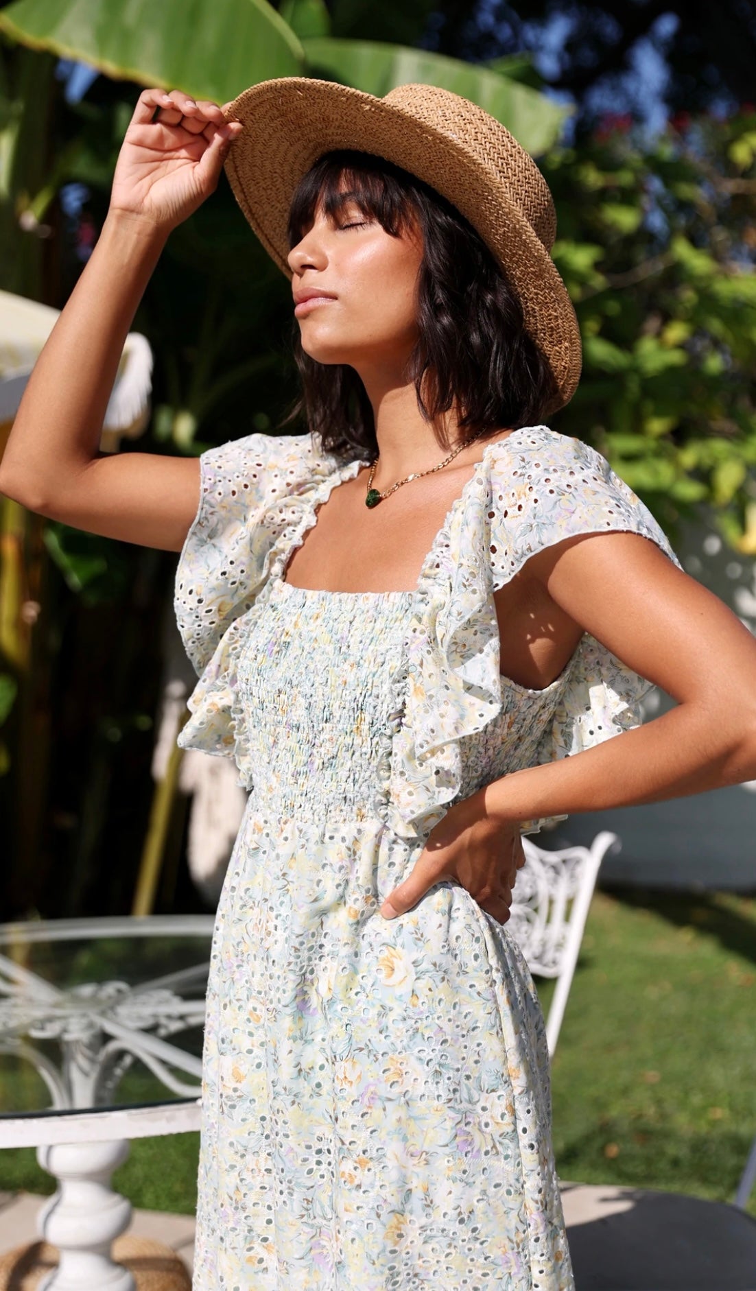 Aquamint Floral Embroidered Gardenia Midi Dress