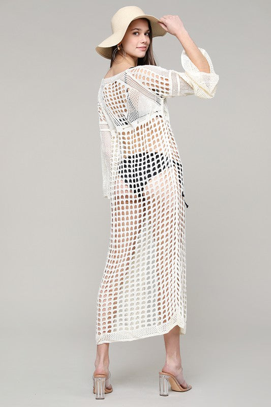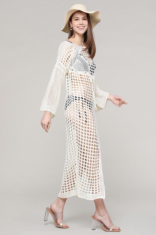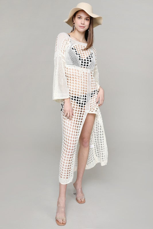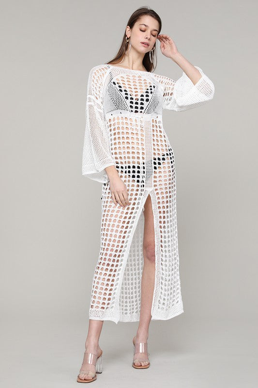 White L/S Knit w/ Slit Maxi Coverup