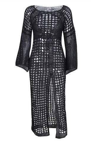 Black L/S Knit w/ Slit Maxi Coverup