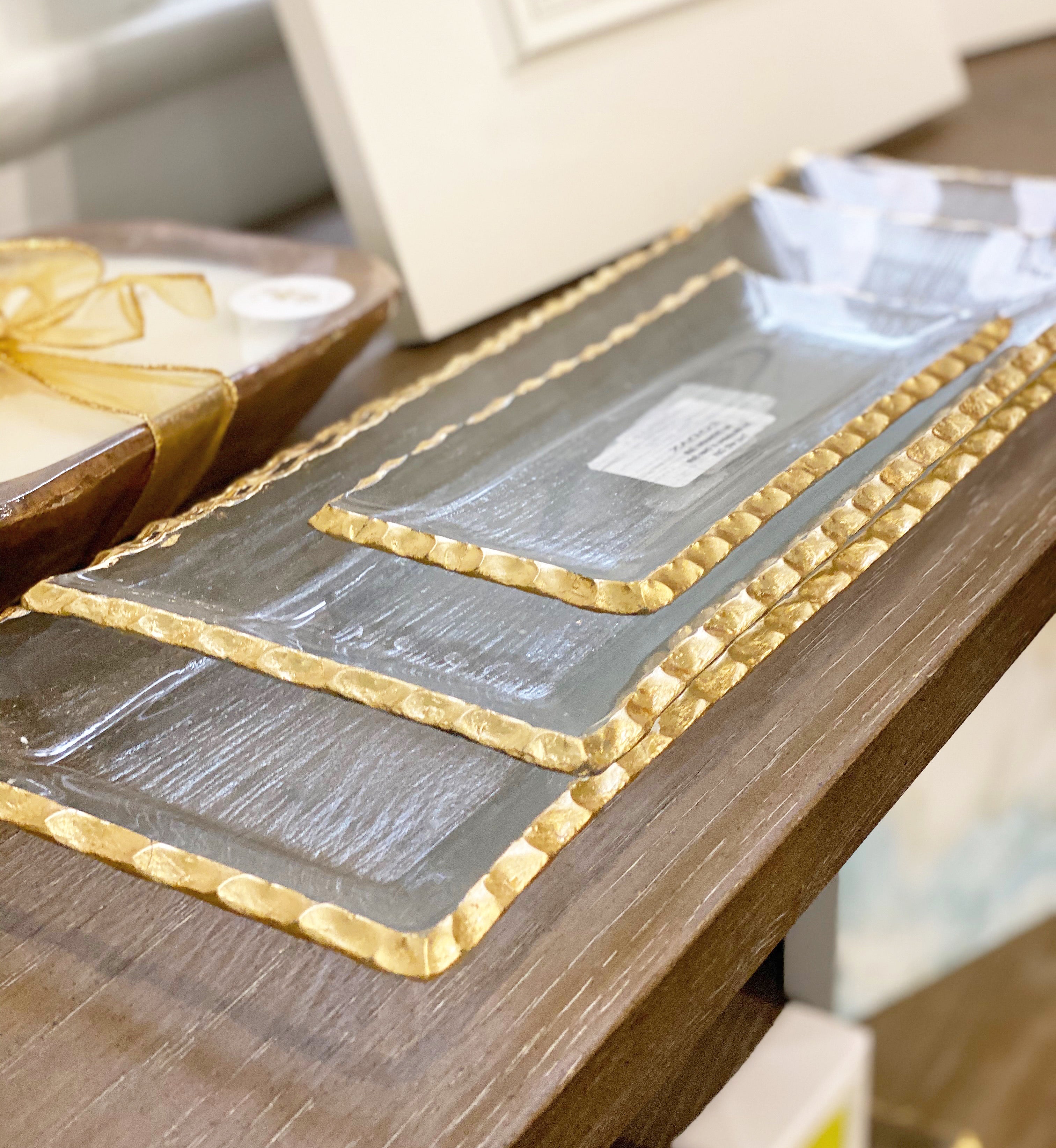 14.5" Textured Rect. Tray w/ Gld. Rim