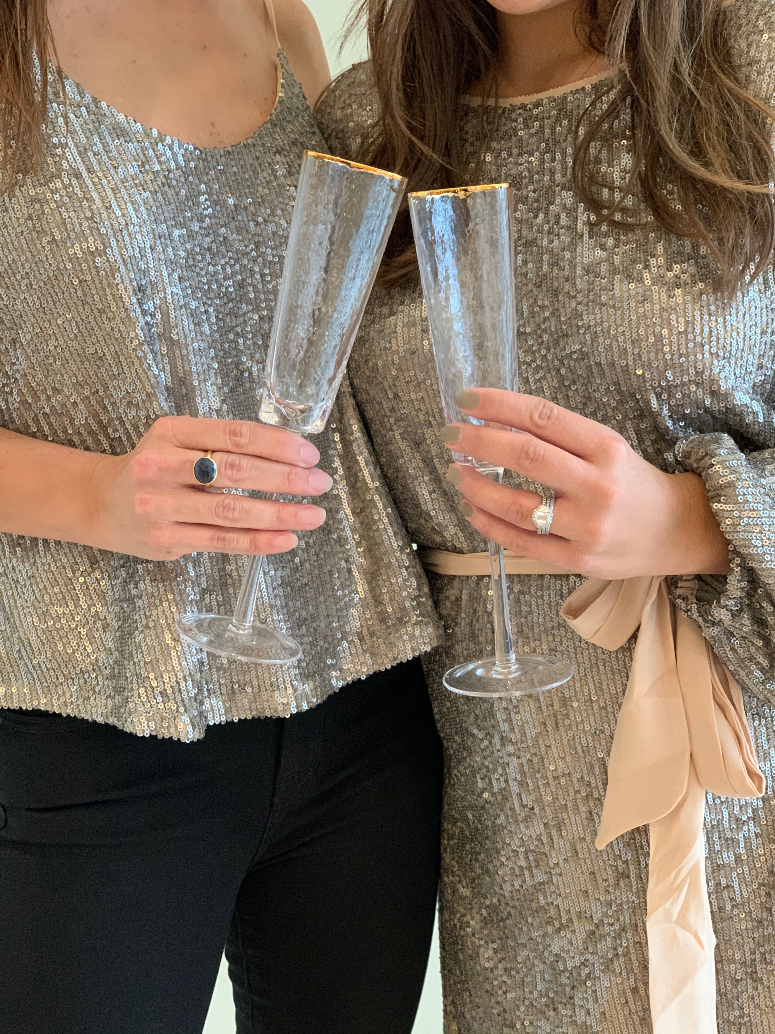 Aperitivo Triangular Champagne Flute-Clear w/ Gld Rim