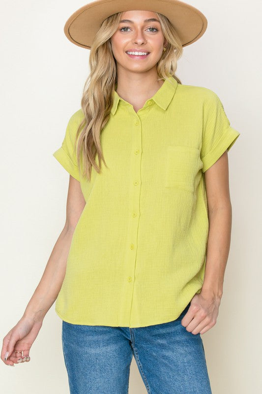 Lime Gauze S/S Top
